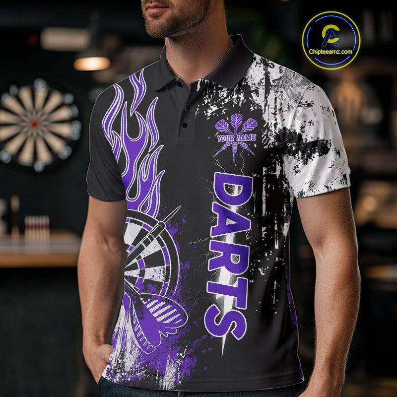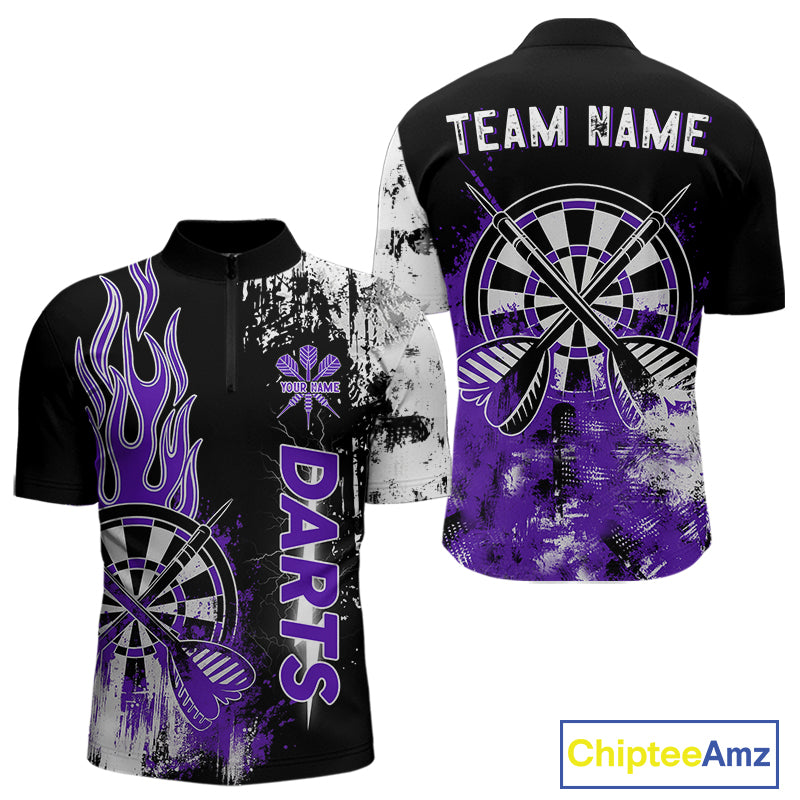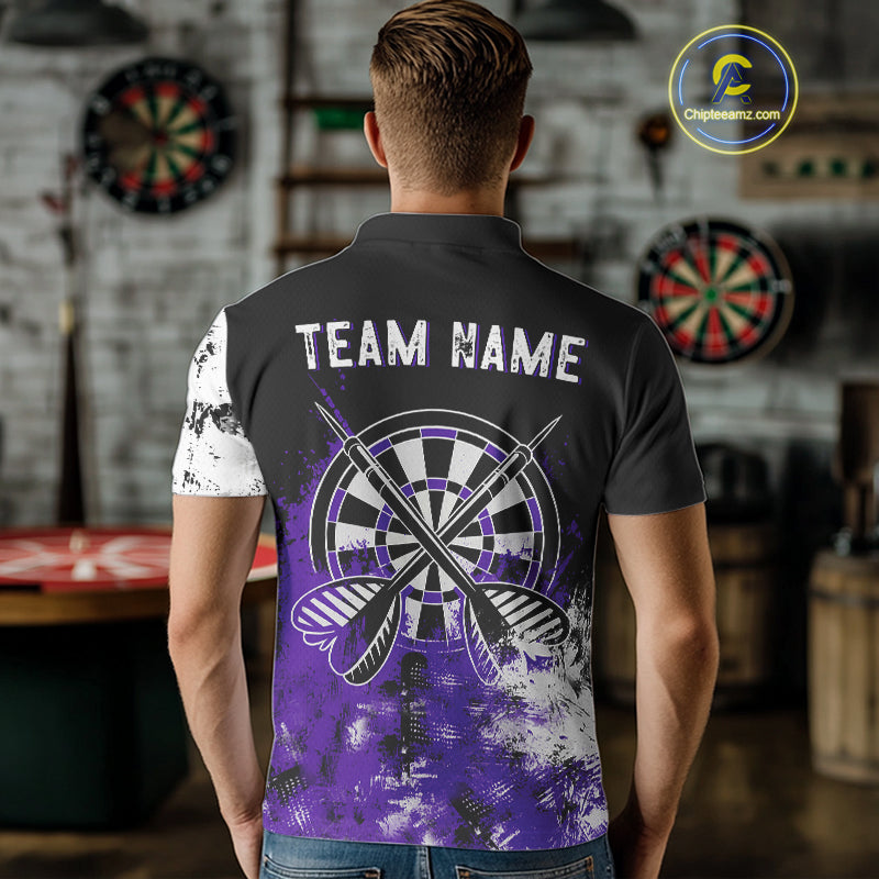 Personalized Purple Grunge Mens Dart Shirts Custom Dart Jerseys Team Polo & 1/4 Zip, Darts Uniform TDM5120