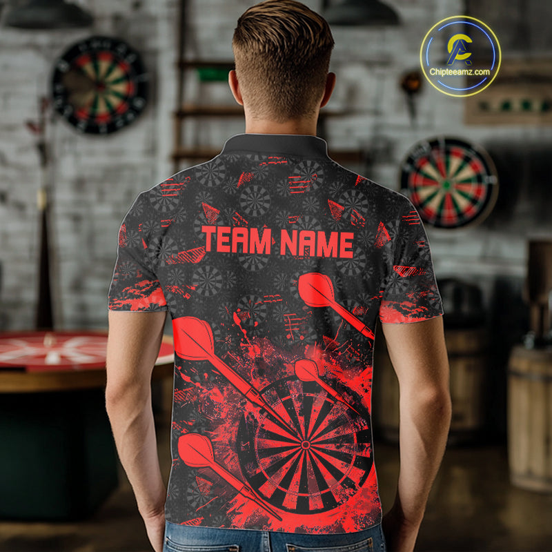 Black And Red Grunge Darts Polo, Quarter Zip For Men Custom Dart Shirts For Team, Dart Jerseys TDM5152