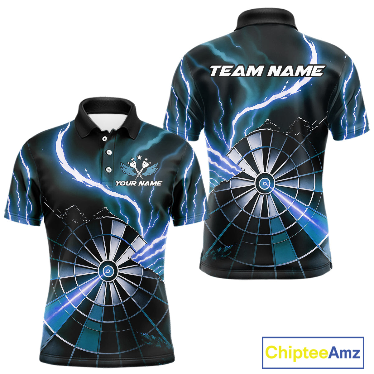 Personalized Blue Lightning Mens Dart Shirts Custom Glowing Darts Team Jersey Polo & 1/4 Zip TDM5161