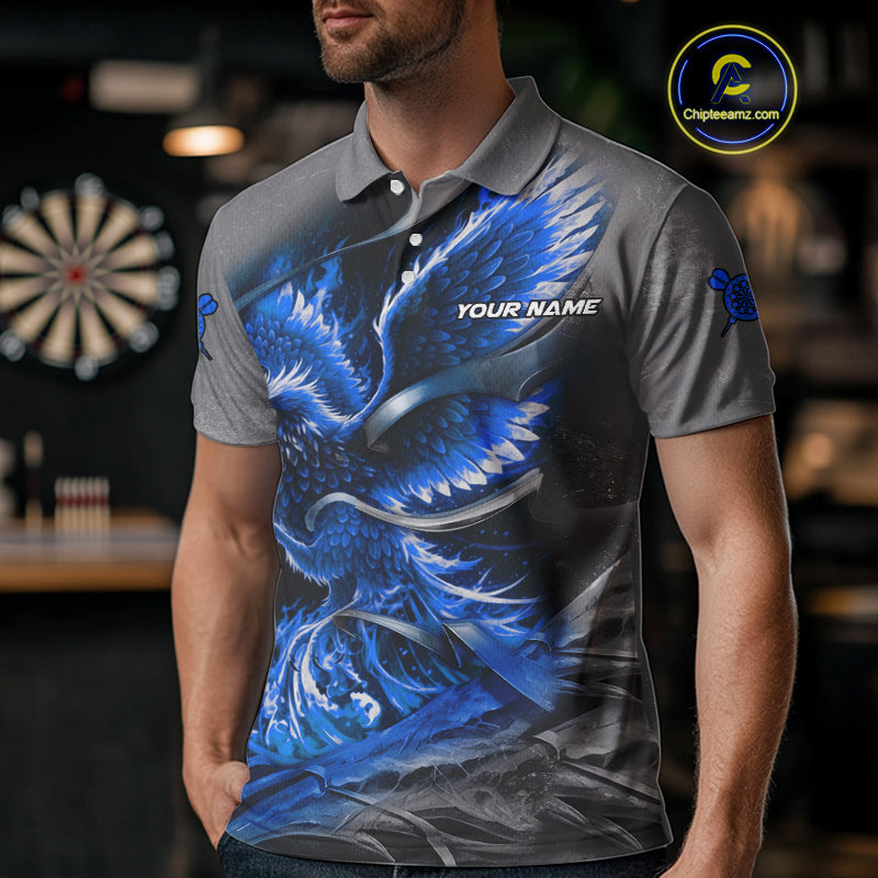 Personalized Phoenix Flame Darts Shirt For Men Custom Darts Team Jersey Polo & 1/4 Zip |Blue TDM5247
