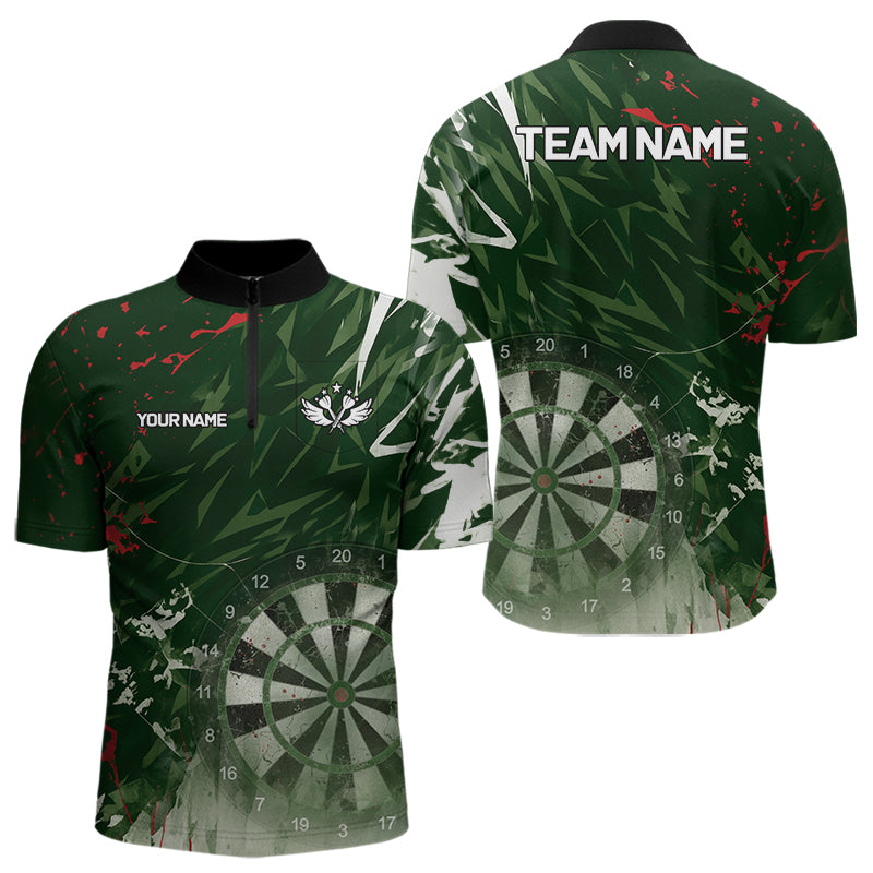 Green Geometric Darts Shirt With Pocket Option Custom Men's Darts Jersey TDM5361