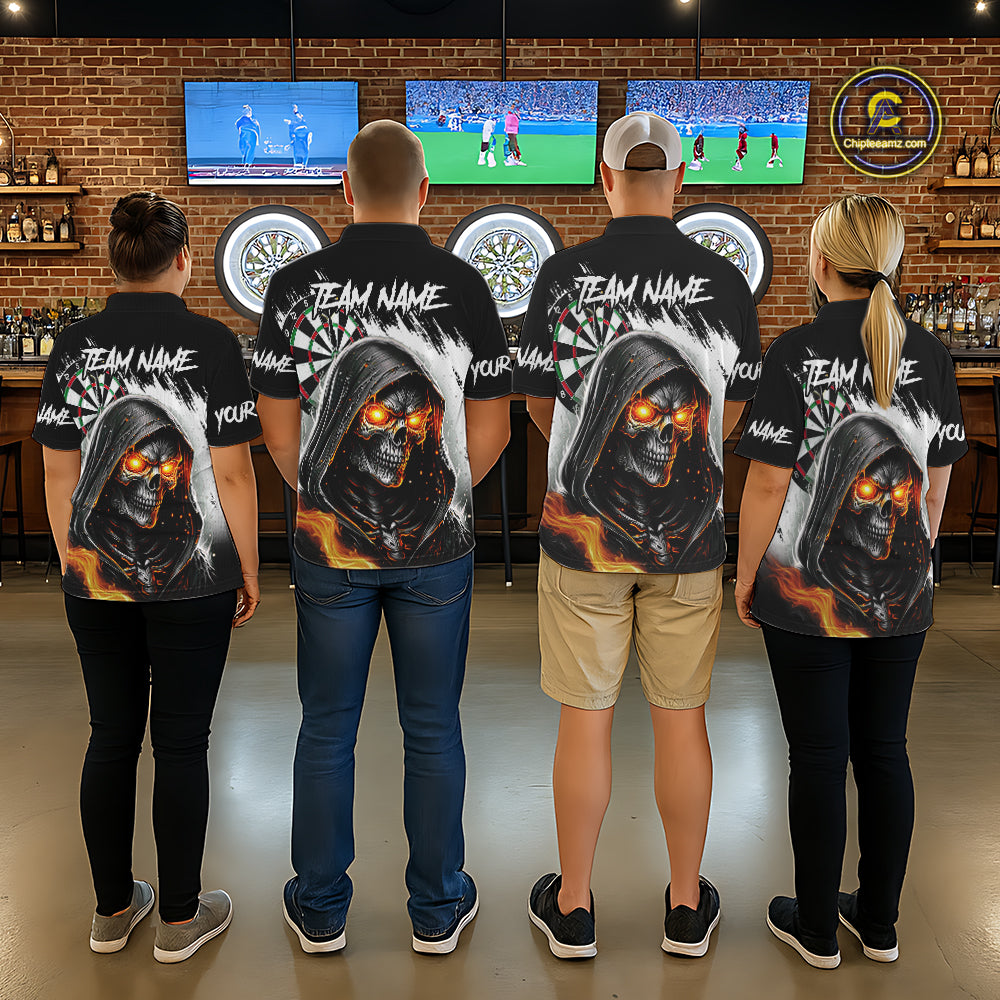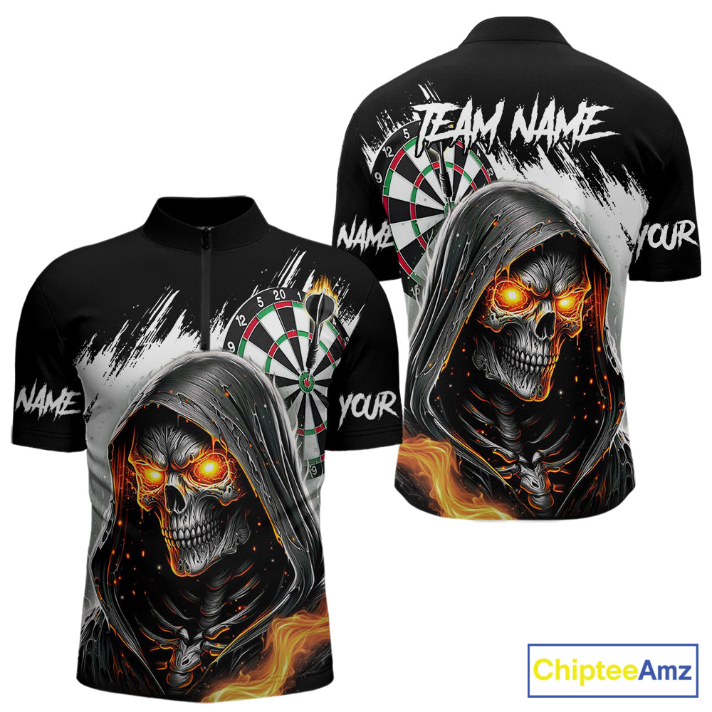 Personalized Grim Reaper Fire Dart Shirts For Men Custom Skull Dart Jersey Polo & 1/4 Zip |White TDM5369