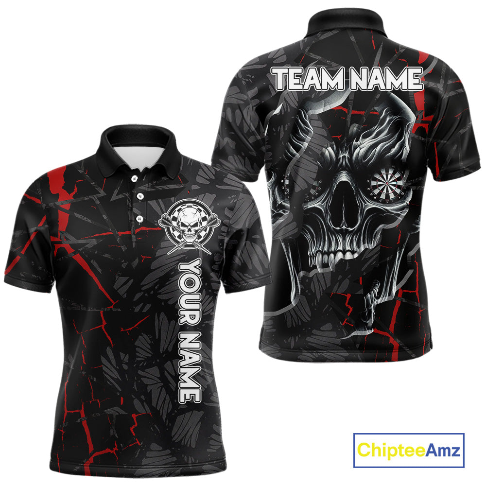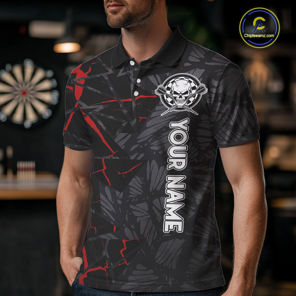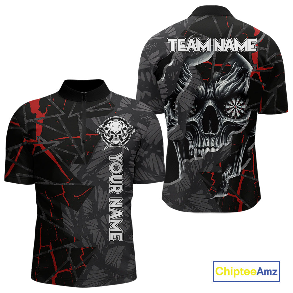 Personalized Skull Black Grunge Darts Polo & Quarter Zip For Men Custom Darts Team Jersey |Red TDM5378