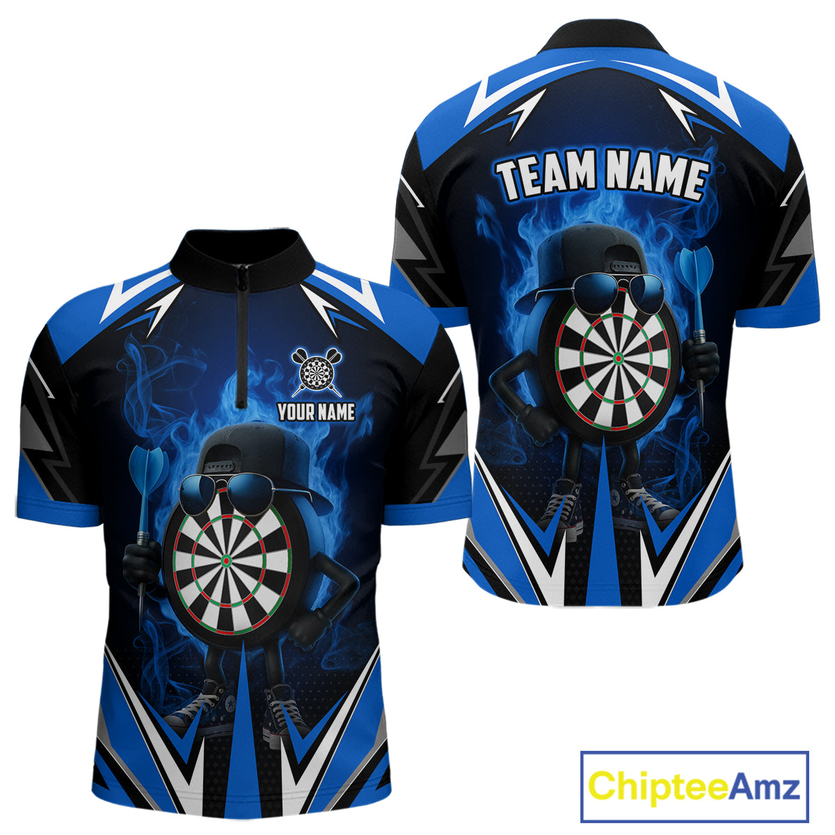 Funny Dartboard Blue Flaming Darts Shirt For Men Custom Darts Jersey Team Polo & Quarter Zip TDM5386