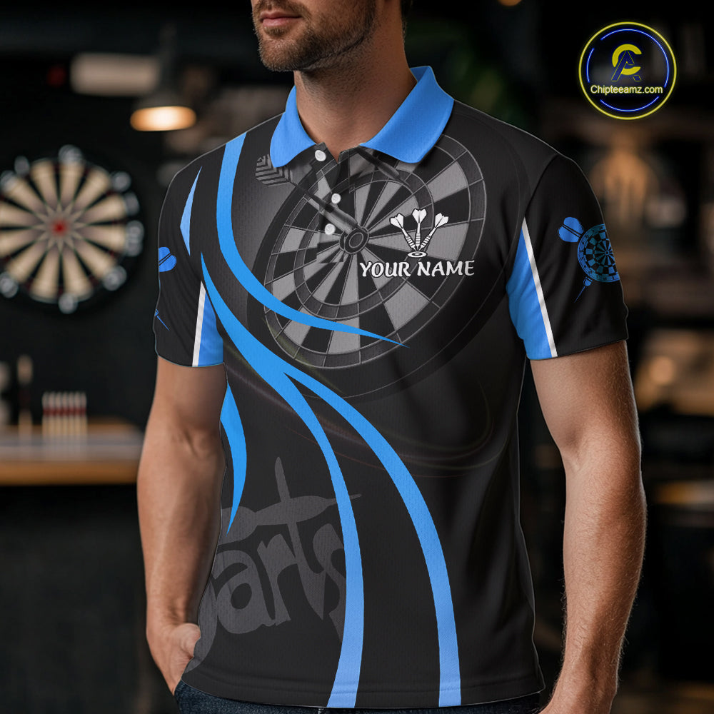 Black And Blue Darts Jersey For Men Custom Team Polo & Quarter Zip Darts Shirt Uniform TDM5411