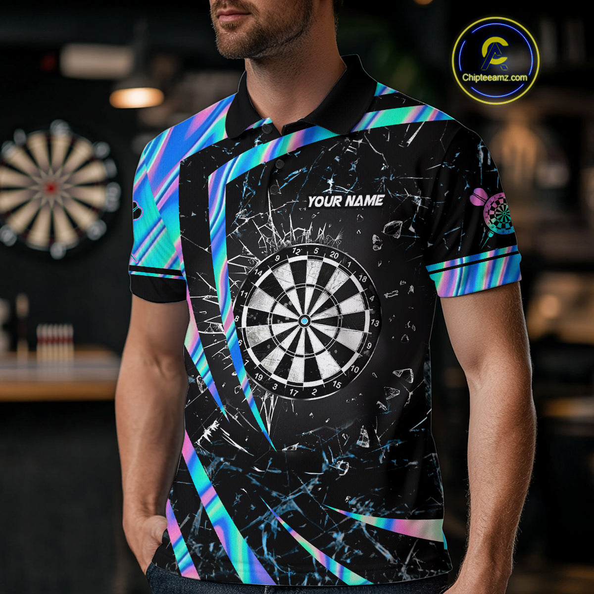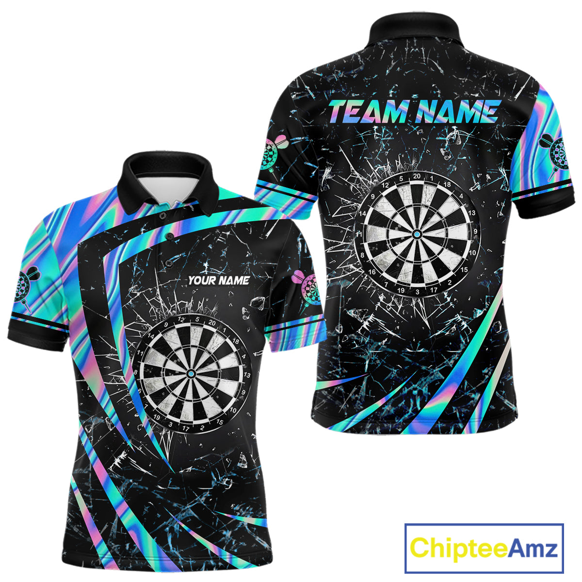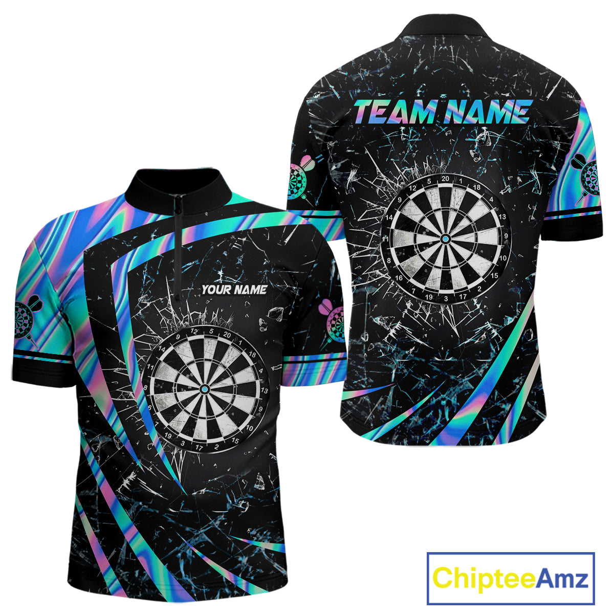Personalized Holographic Glass Break Darts Shirt For Men Custom Darts Jersey Team Polo & 1/4 Zip TDM5413