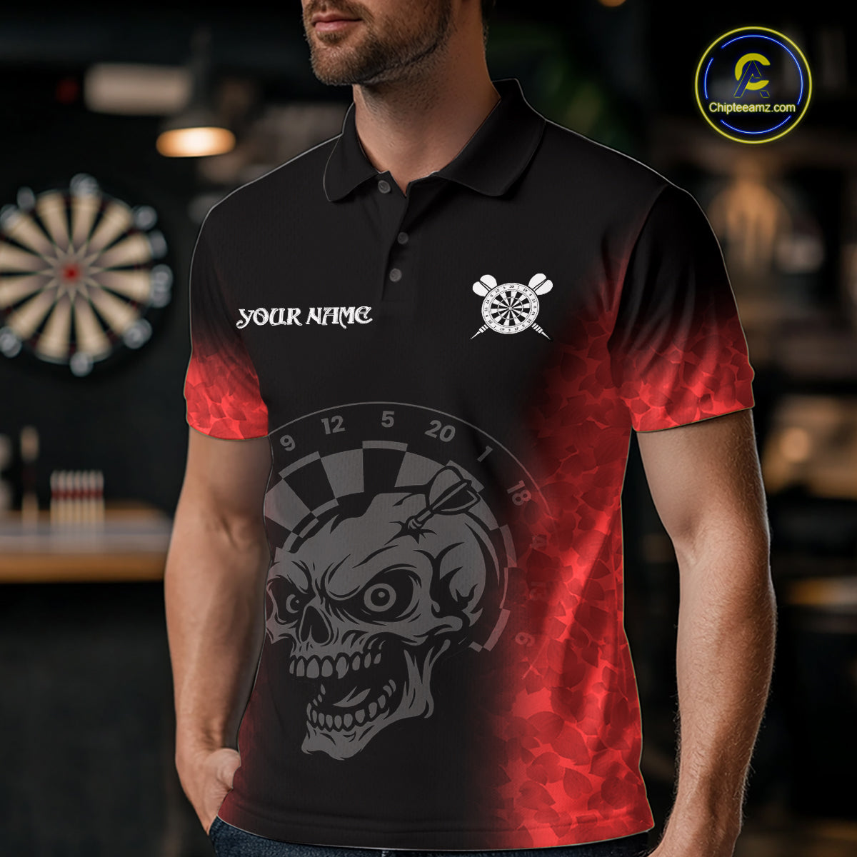 Black And Red Custom Skull Darts Shirt For Men, Darts Jersey Pocket Option TDM5438