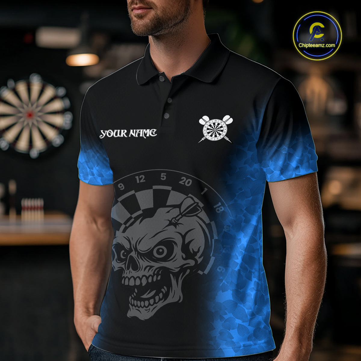 Black And Blue Custom Skull Darts Shirt For Men, Darts Jersey Pocket Option TDM5439