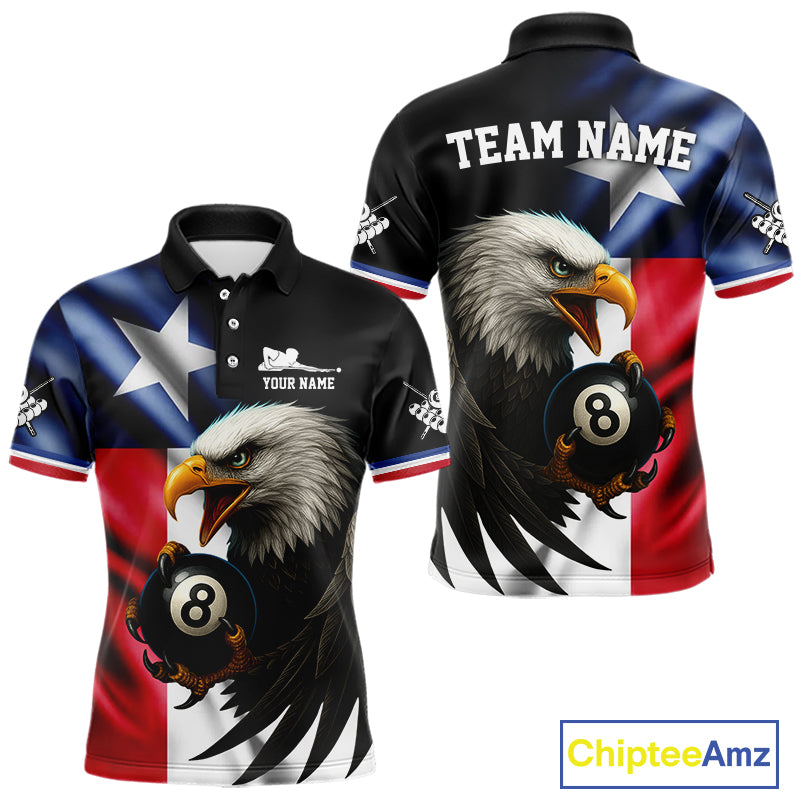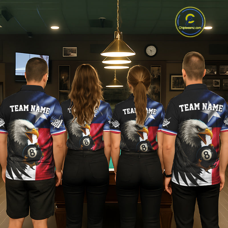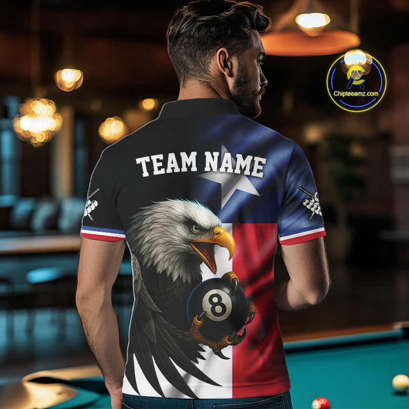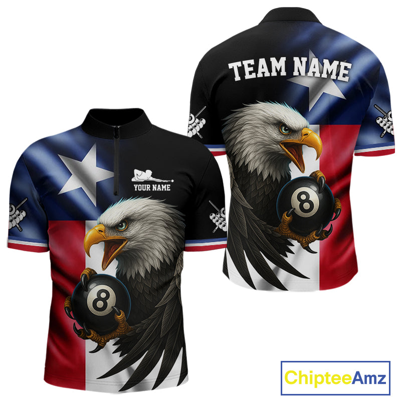 Texas Flag Eagle 8 Ball Men's Billiard Polo & 1/4 Zip Custom Patriotic Team Billiard Pool Jersey TDM5464