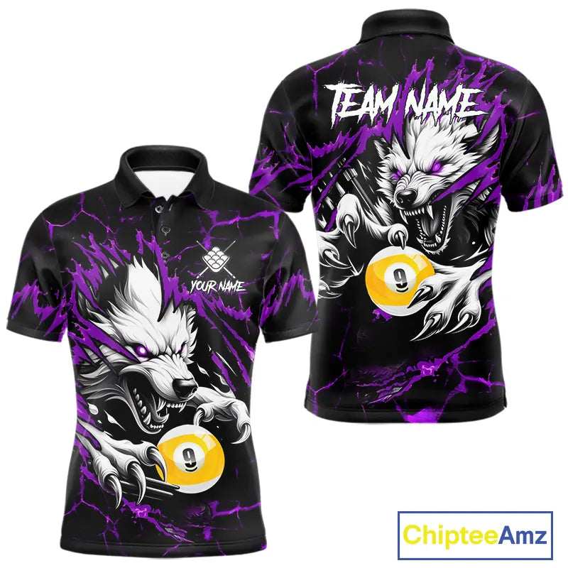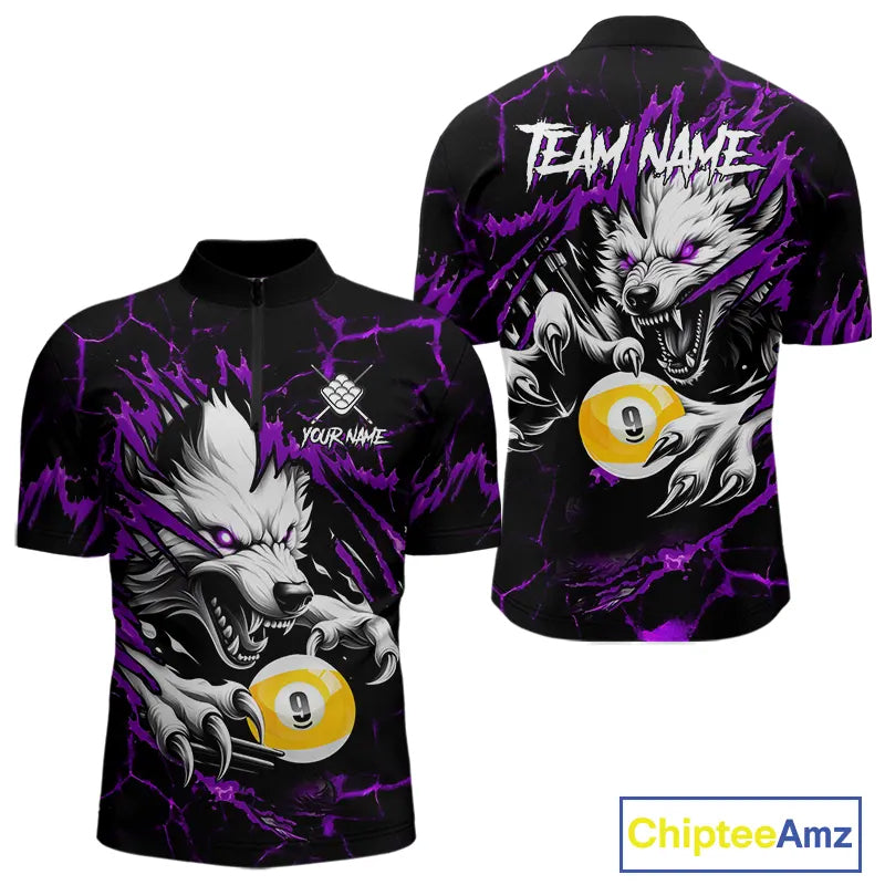 Personalized 9 Ball Pool Wolf Billiard Shirt For Men, Billiard Team Jersey Polo & 1/4 Zip|Purple TDM5469