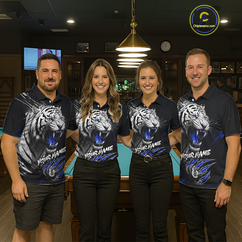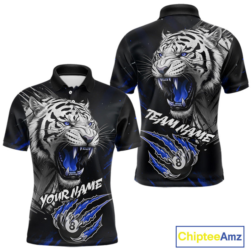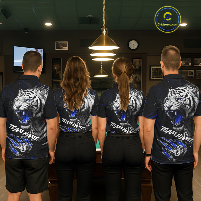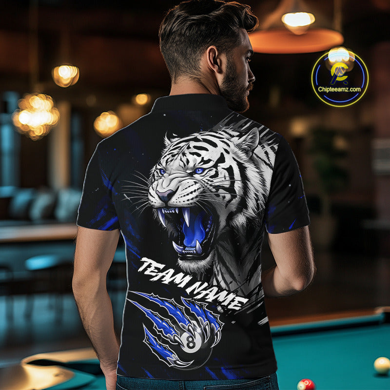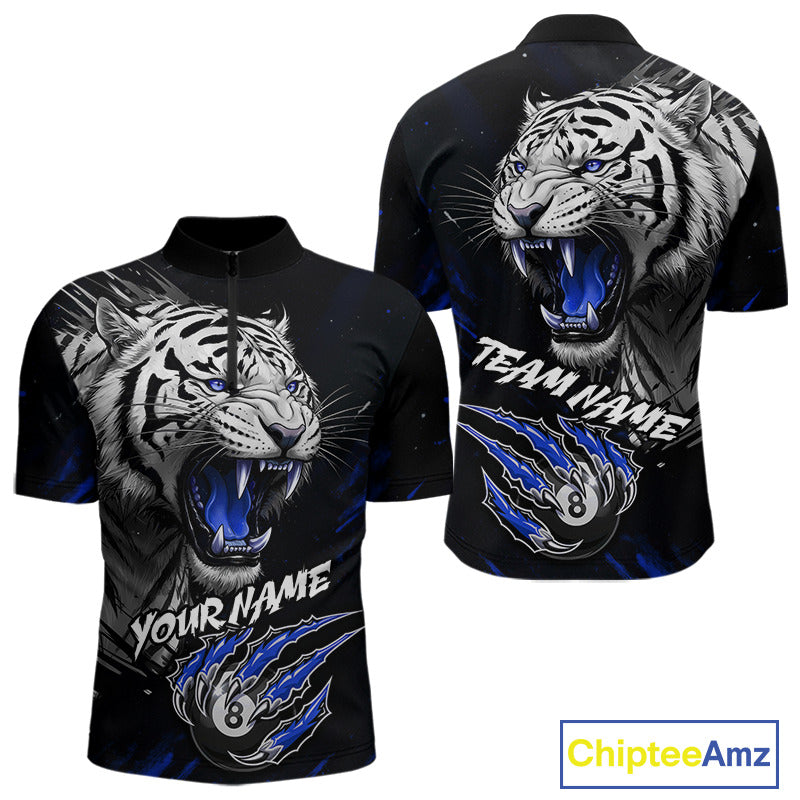 Personalized Tiger 8 Ball Pool Billiard Shirt For Men, Billiard Team Jersey Polo & 1/4 Zip |Blue TDM5496