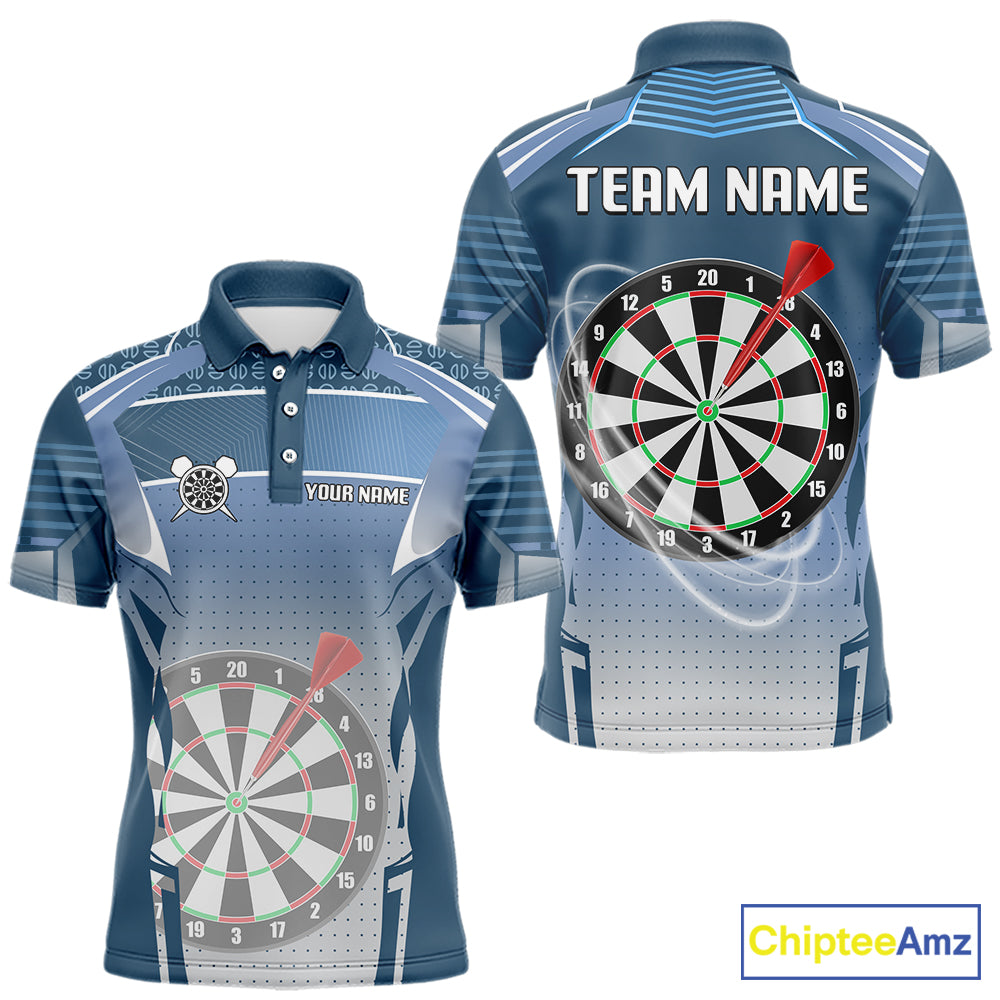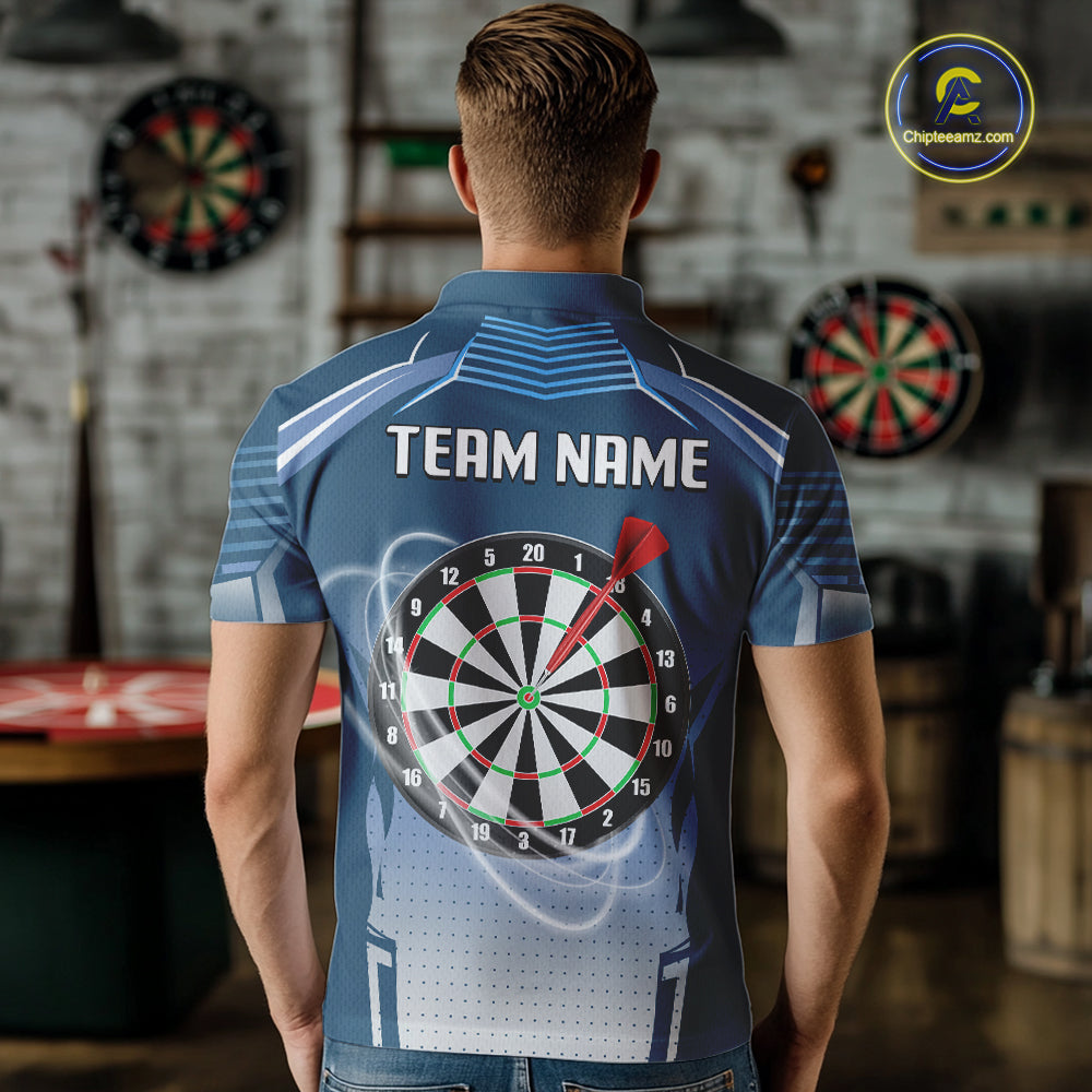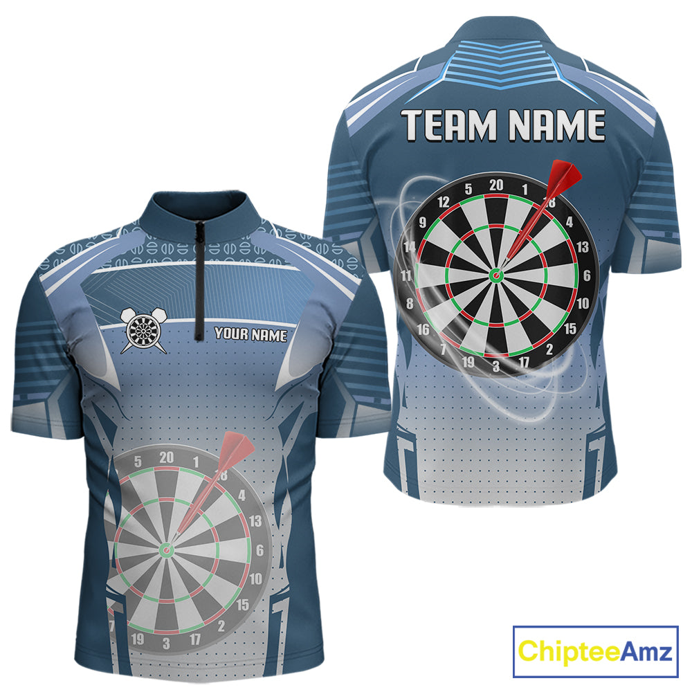 Blue Dartboard Lights Custom Darts Polo & Quarter Zip For Men, Personalized 3D Darts Team Jersey TDM5497