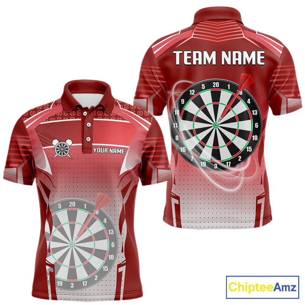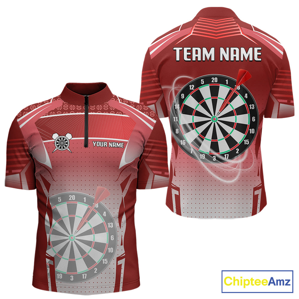Red Dartboard Lights Custom Darts Polo & Quarter Zip For Men, Personalized 3D Darts Team Jersey TDM5498