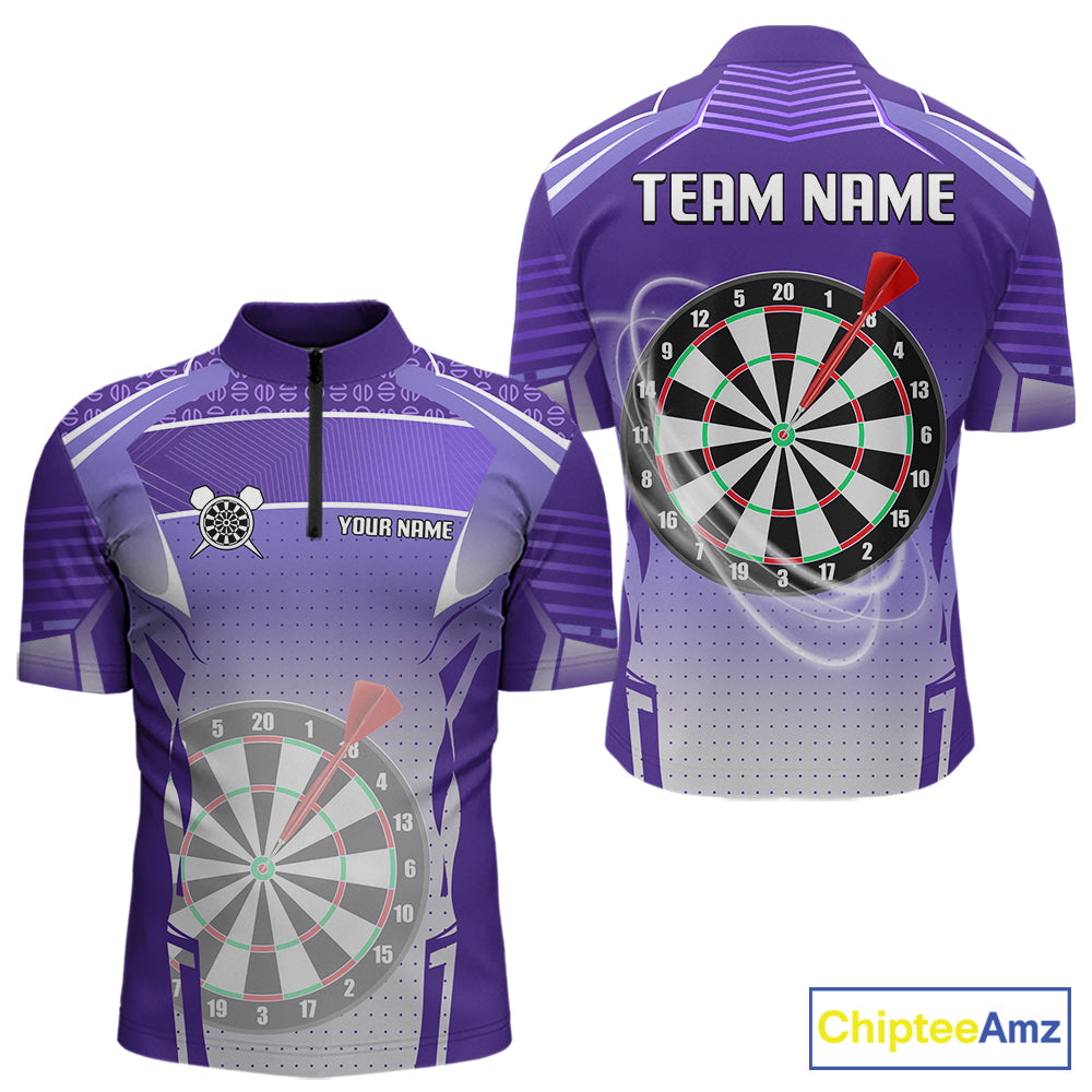 Purple Dartboard Lights Custom Darts Polo & Quarter Zip For Men, Personalized 3D Darts Team Jersey TDM5499
