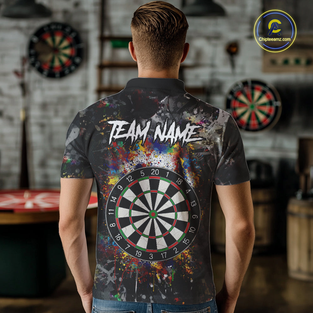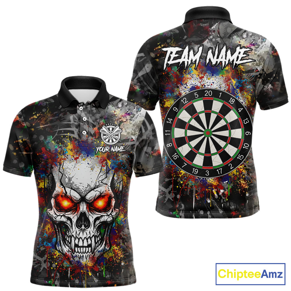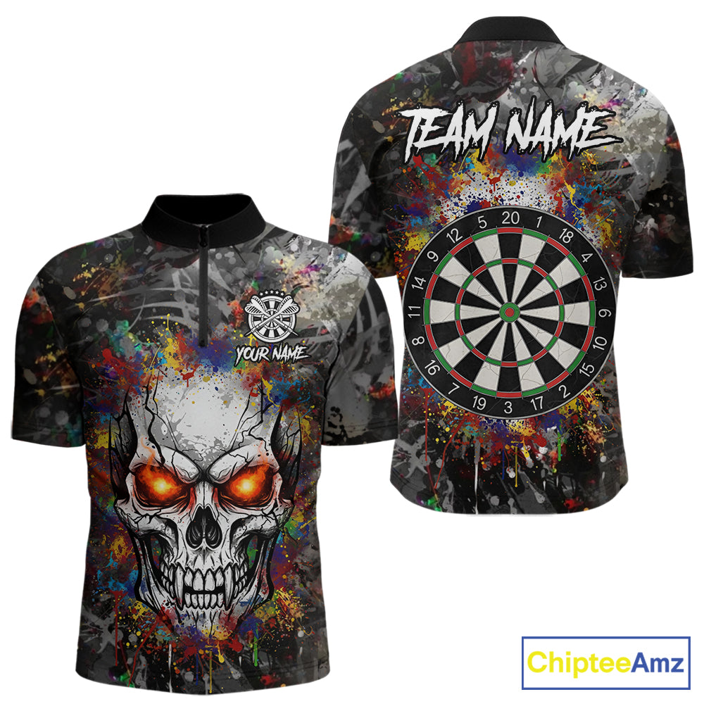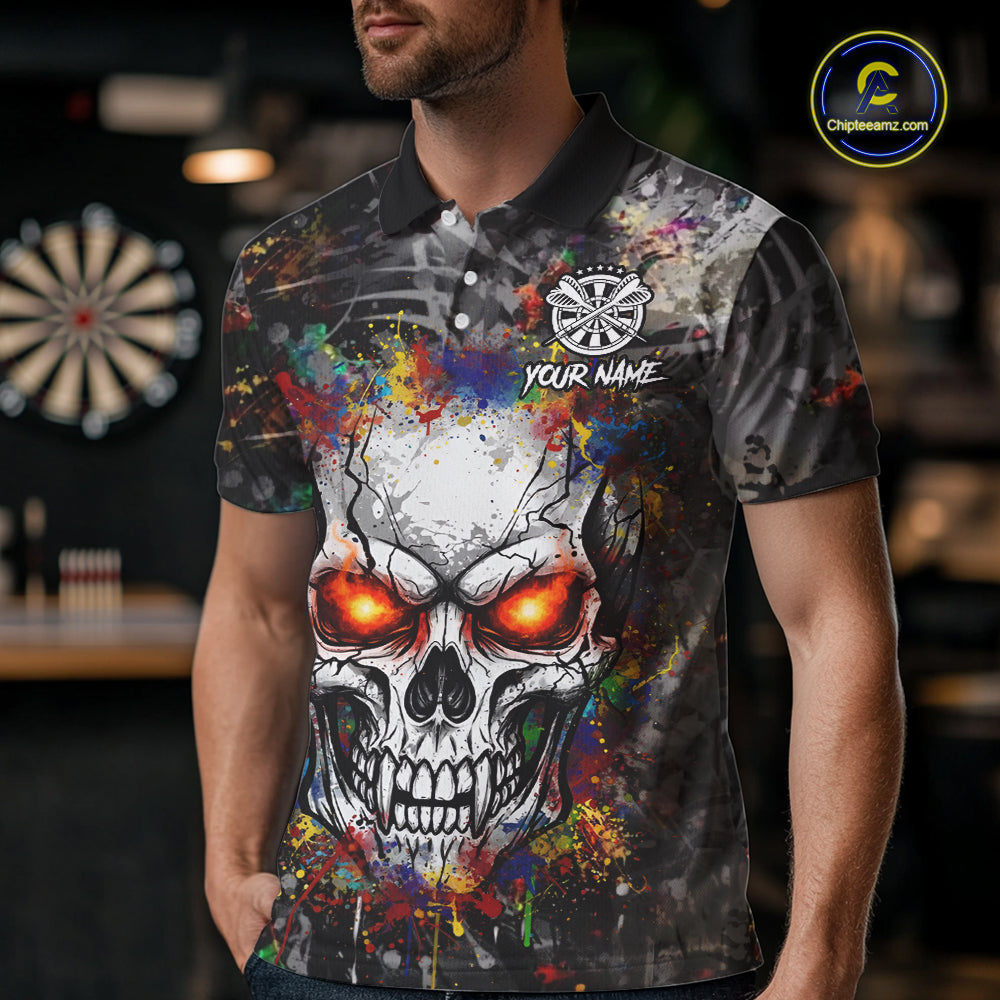 Colorful Grunge Skull Darts Polo & Quarter Zip For Men Custom Darts Team Jersey, Funny Darts Gifts TDM5503