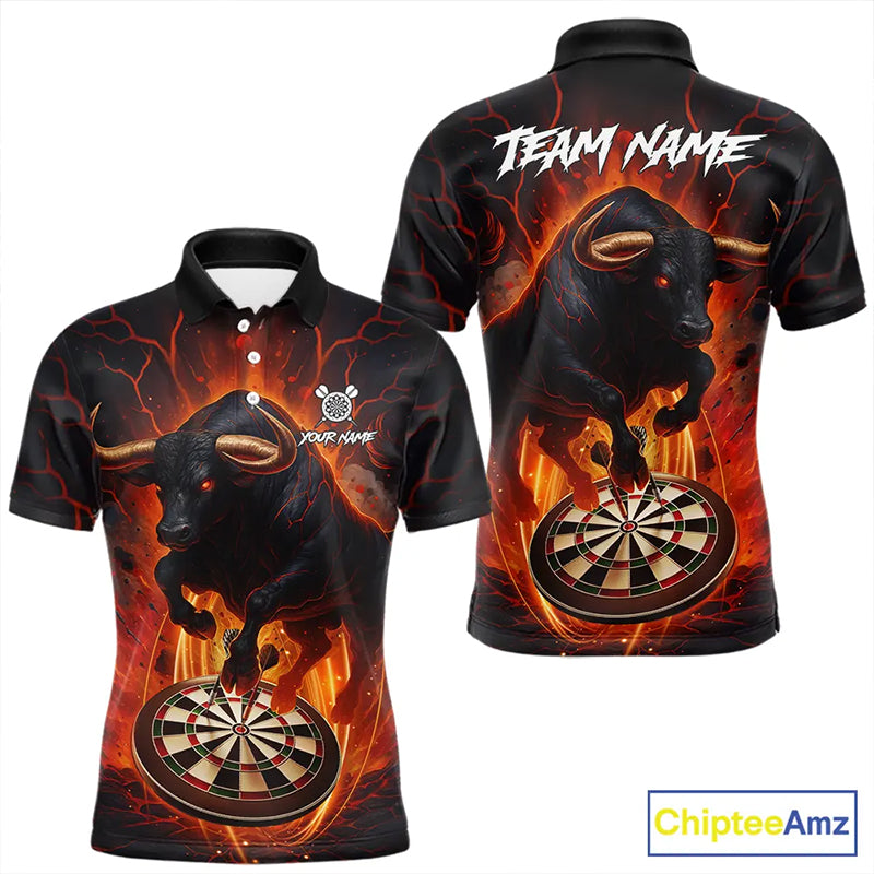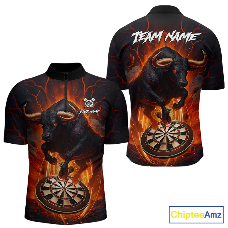 Personalized Bull Fire Darts Shirt For Men Custom Darts Jersey Team Polo & 1/4 Zip | Orange TDM5506