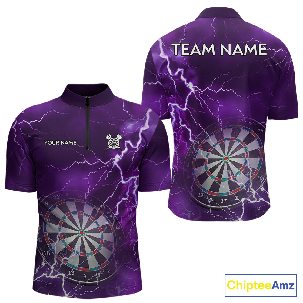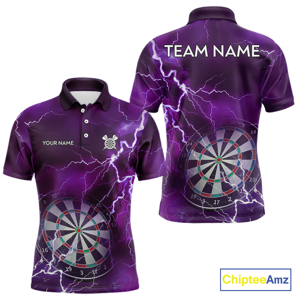 Custom Lightning Purple Darts Shirt With Pocket Option For Men, Darts Jersey TDM5552