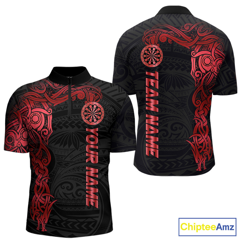 Personalized Black And Red Tribal Darts Shirt For Men Custom Darts Jersey Team Polo & Quarter Zip TDM5558