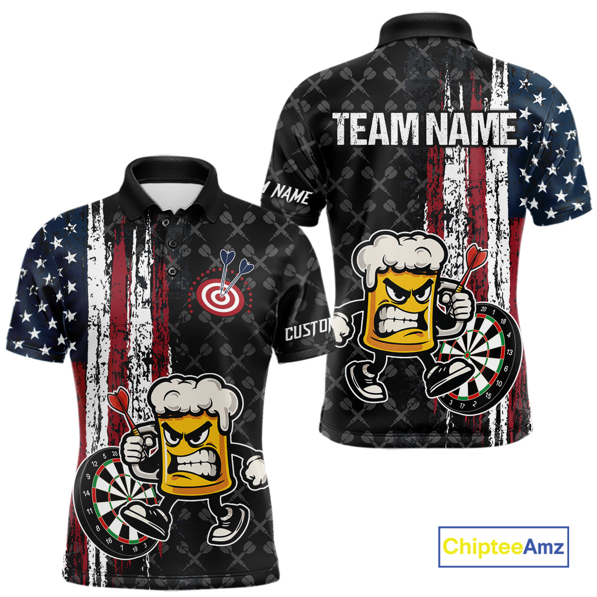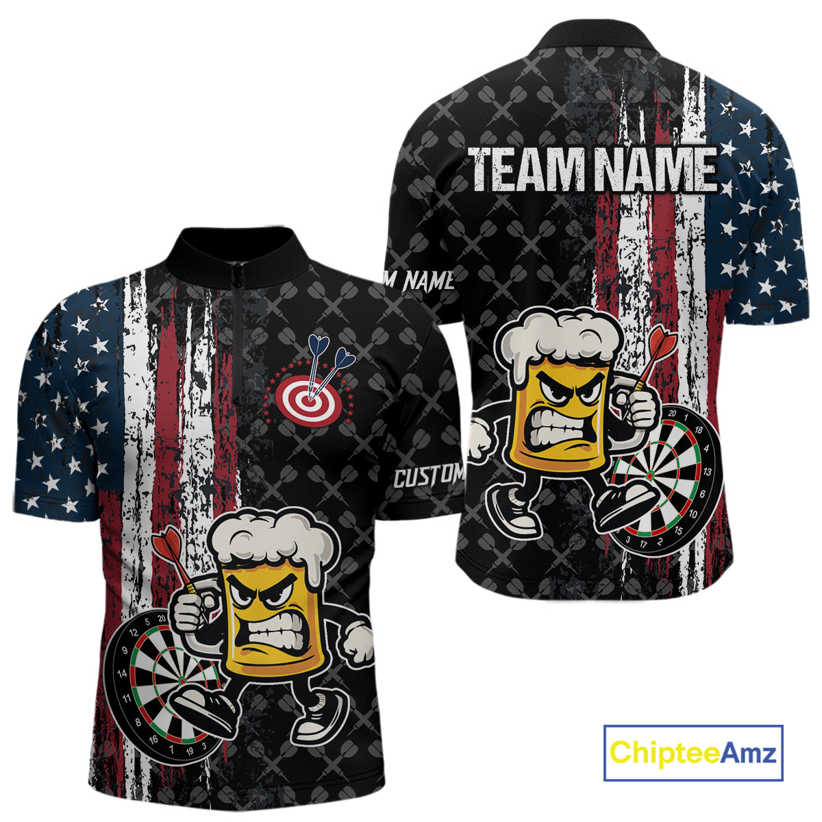 Funny Angry Beer Grunge American Flag Darts Shirt For Men Custom Patriotic Darts Team Jersey TDM5563