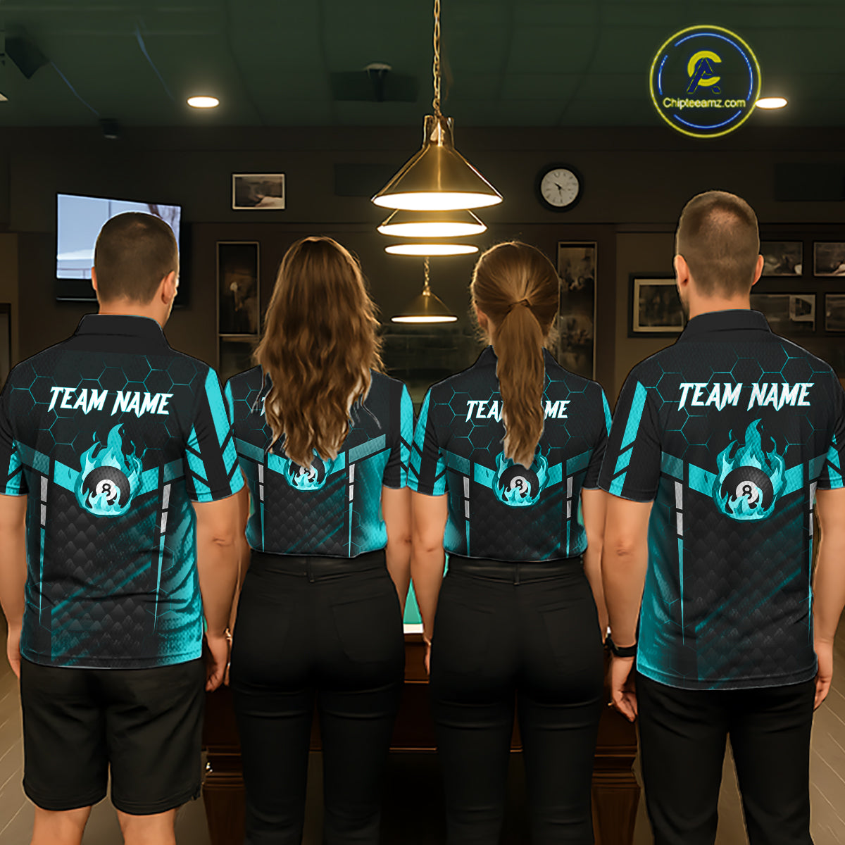 Personalized Turquoise 8 Ball Flame Billiard Shirt For Men, Billiard Team Jersey Polo & 1/4 Zip TDM5586