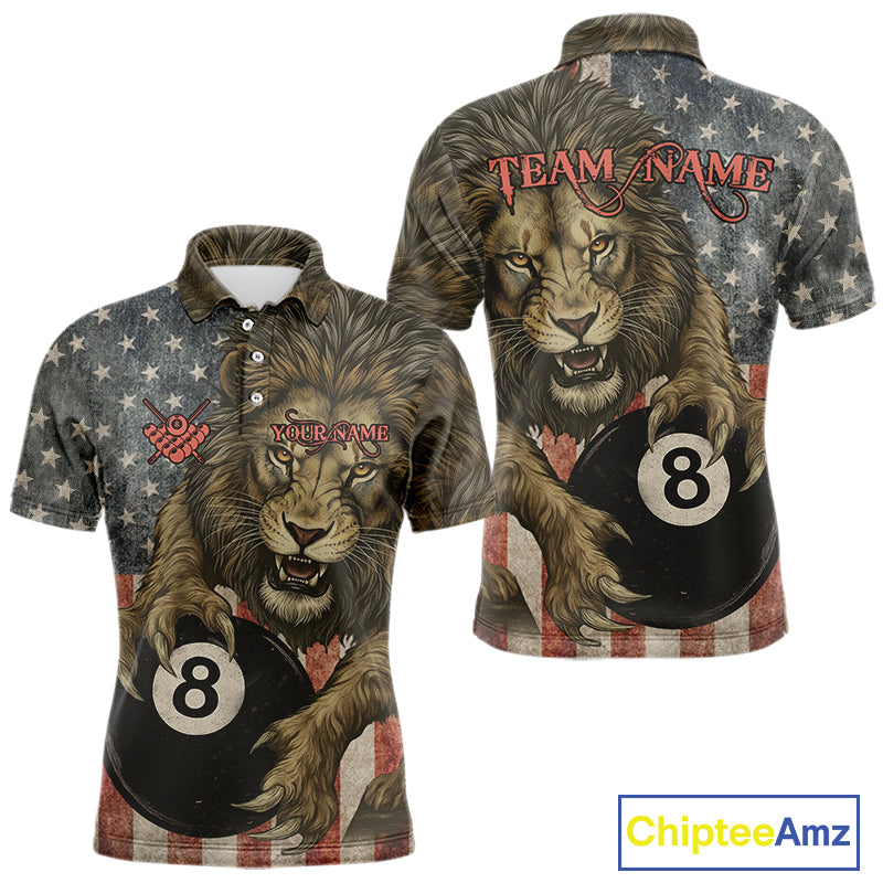 Personalized Vintage American Flag Lion Billiard Shirt For Men, 8 Ball Pool Billiard Team Jerseys TDM5591