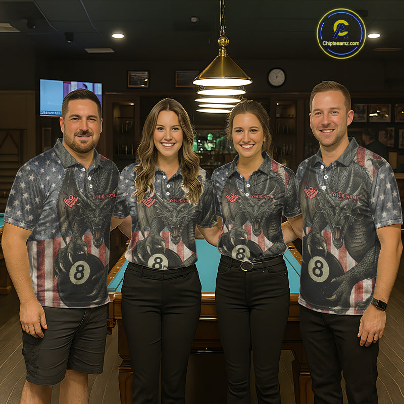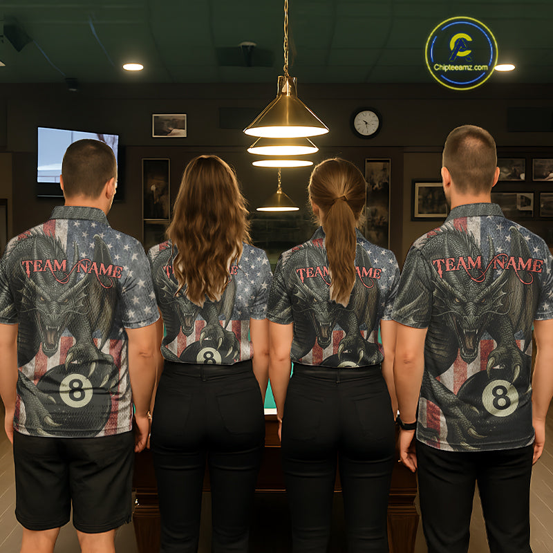 Personalized Vintage American Flag Dragon Billiard Shirt For Men, 8 Ball Pool Billiard Team Jerseys TDM5592