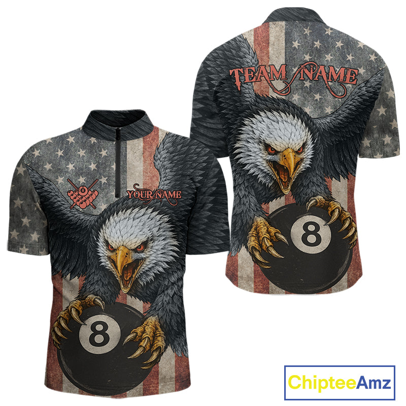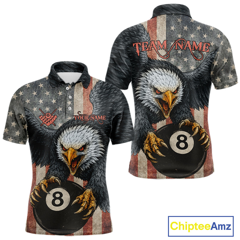 Personalized Vintage American Flag Eagle Billiard Shirt For Men, 8 Ball Pool Billiard Team Jerseys TDM5593