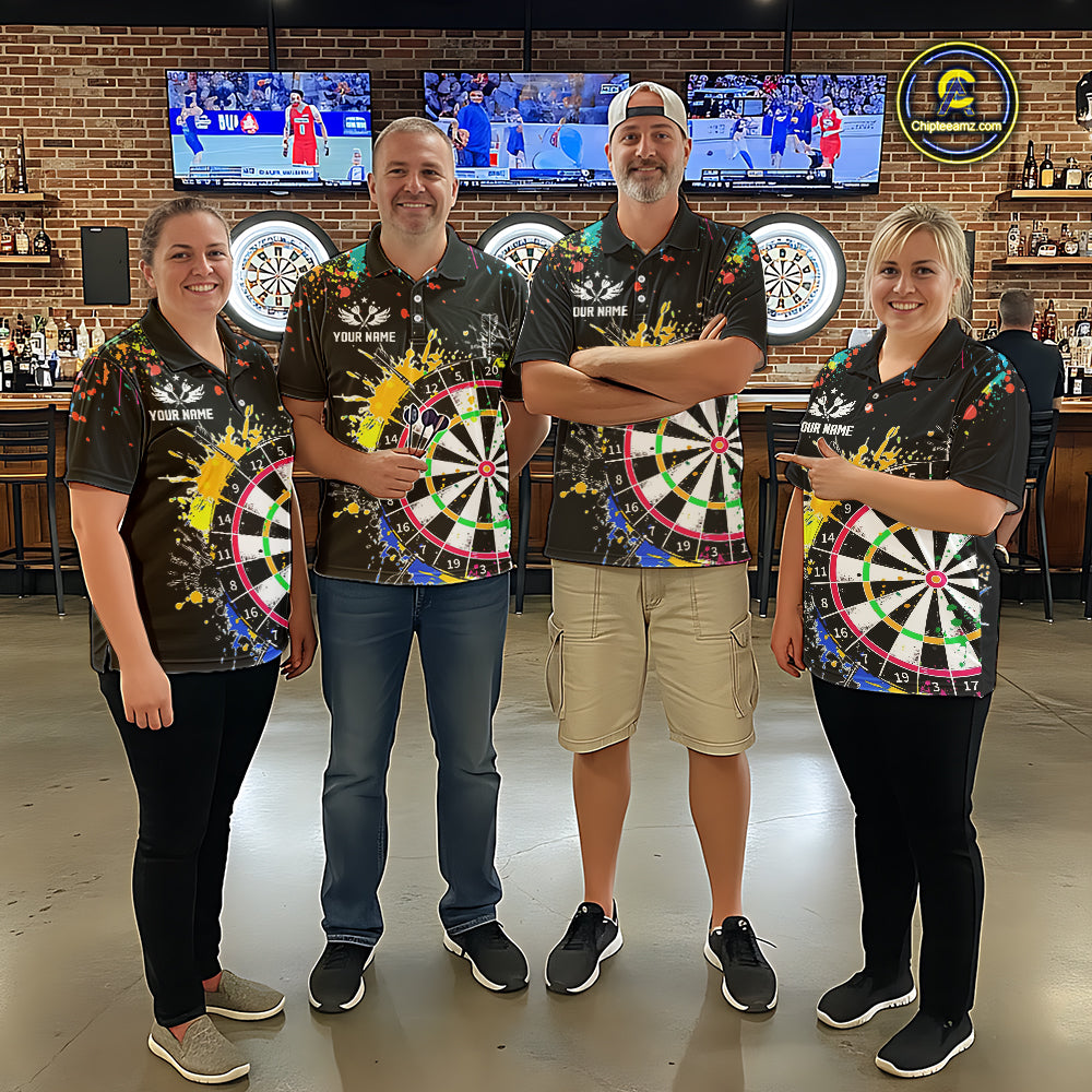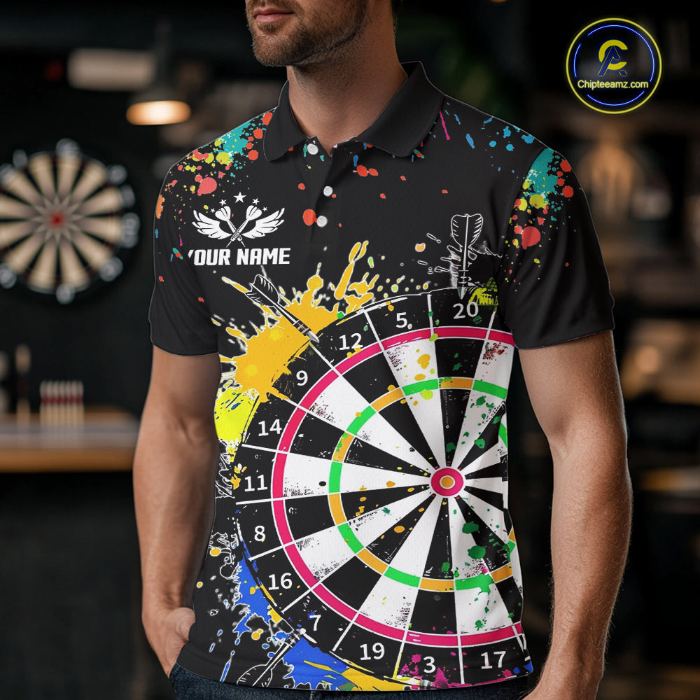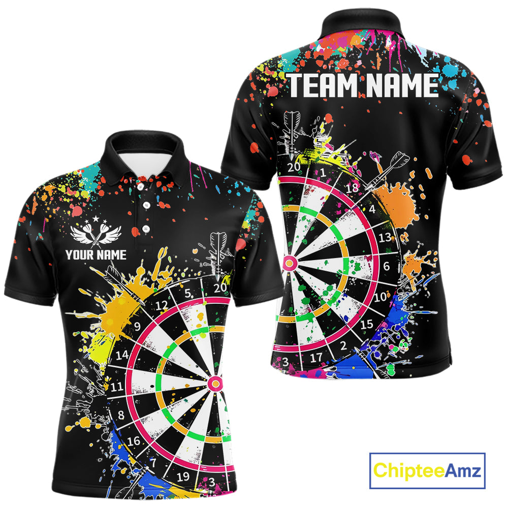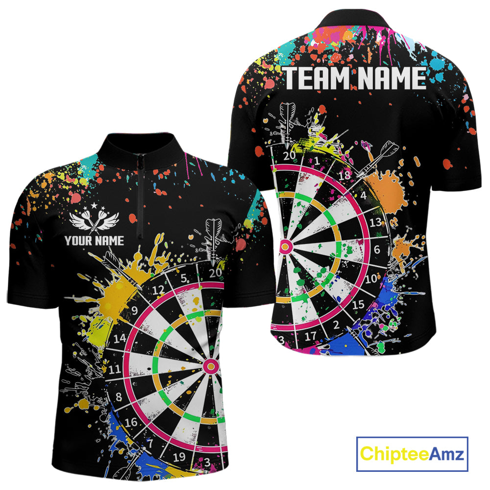 Funny Dartboard Colorful Paint Dart Shirt For Men Custom Darts Team Jersey Polo & 1/4 Zip |Black TDM5624
