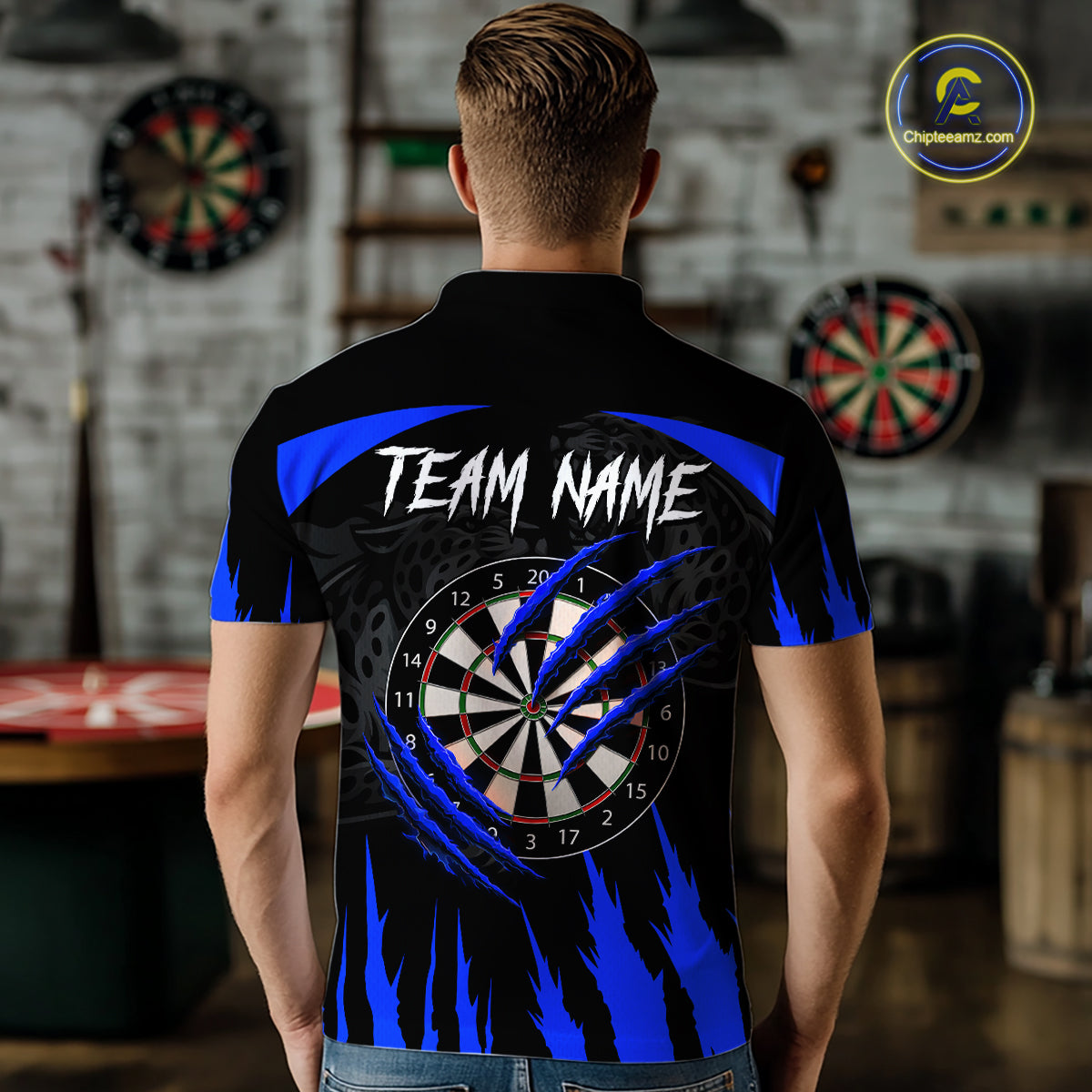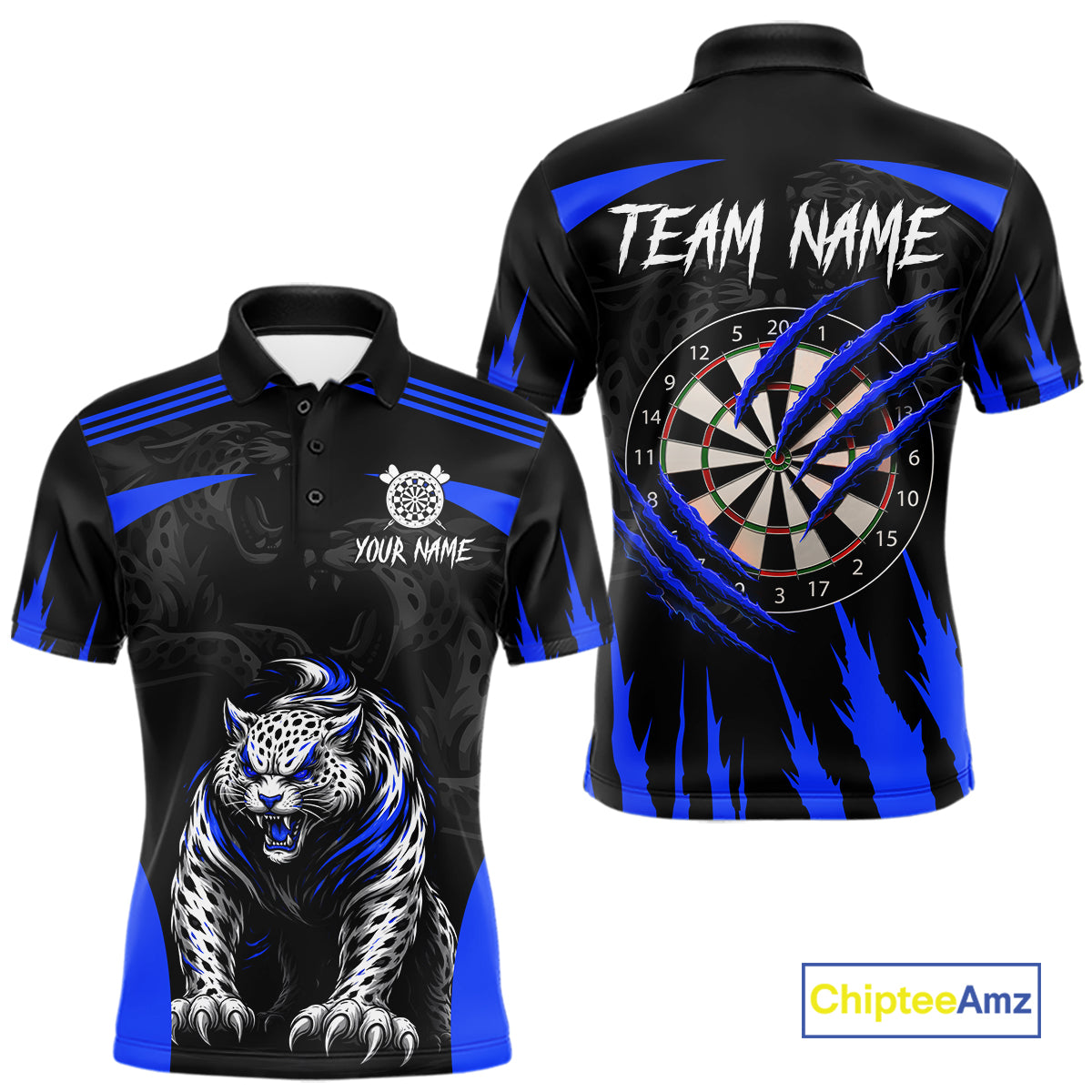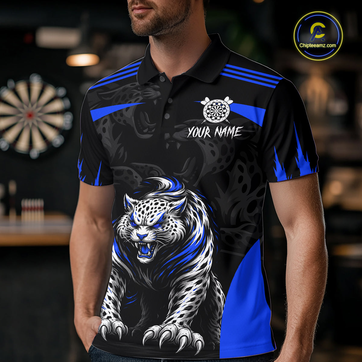 Black And Blue Custom Leopard Darts Shirt For Men, Darts Team Jersey Polo & Quarter Zip TDM5626