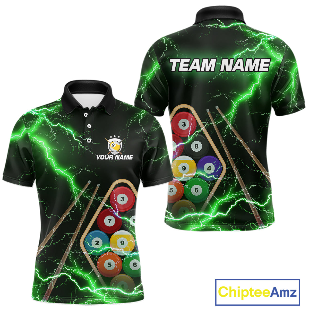 Green 9 Ball Thunder Lightning Billiard Shirts For Men Custom 9 Ball Pool Team Jersey Polo, 1/4 Zip TDM5634
