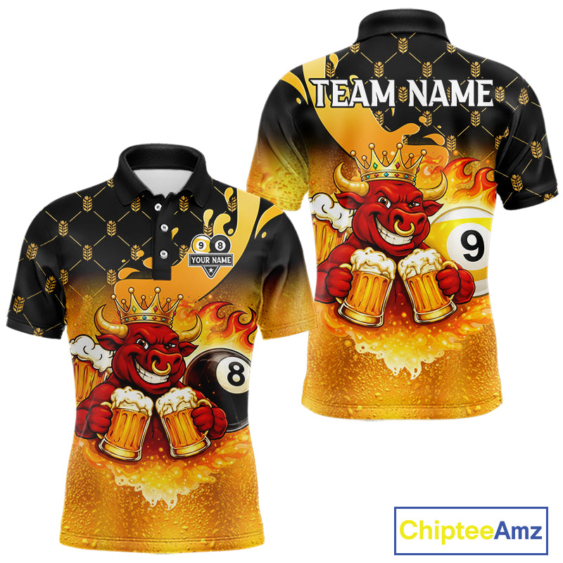 Funny Bull And Beer 8 Ball 9 Ball Billiard Shirt For Men Custom Billiard Team Jersey Polo, 1/4 Zip TDM5646