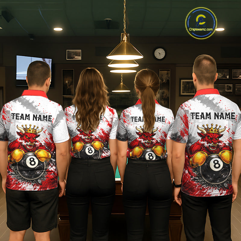 Red And White Grunge Bull 8 Ball Billiard Shirt For Men Custom Pool Team Jersey Polo & 1/4 Zip TDM5647