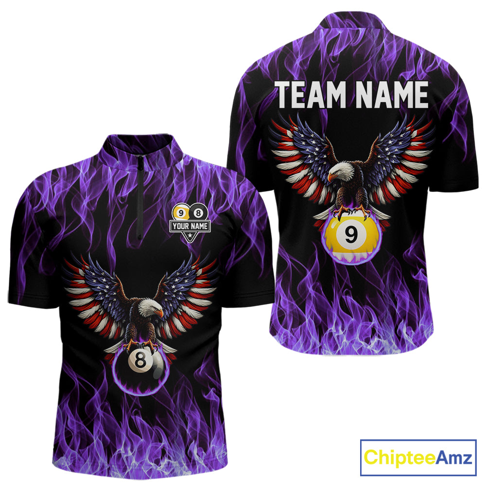 Purple Flaming American Flag Eagle 8 Ball & 9 Ball Billiard Shirt For Men Custom Pool Team Jersey TDM5653