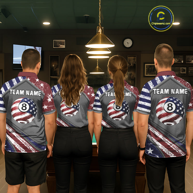 Personalized US Flag 8 Ball Pool Billiard Shirt For Men Custom Patriotic Billiard Team Jersey TDM5678