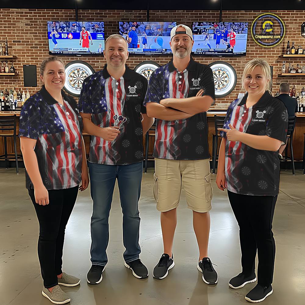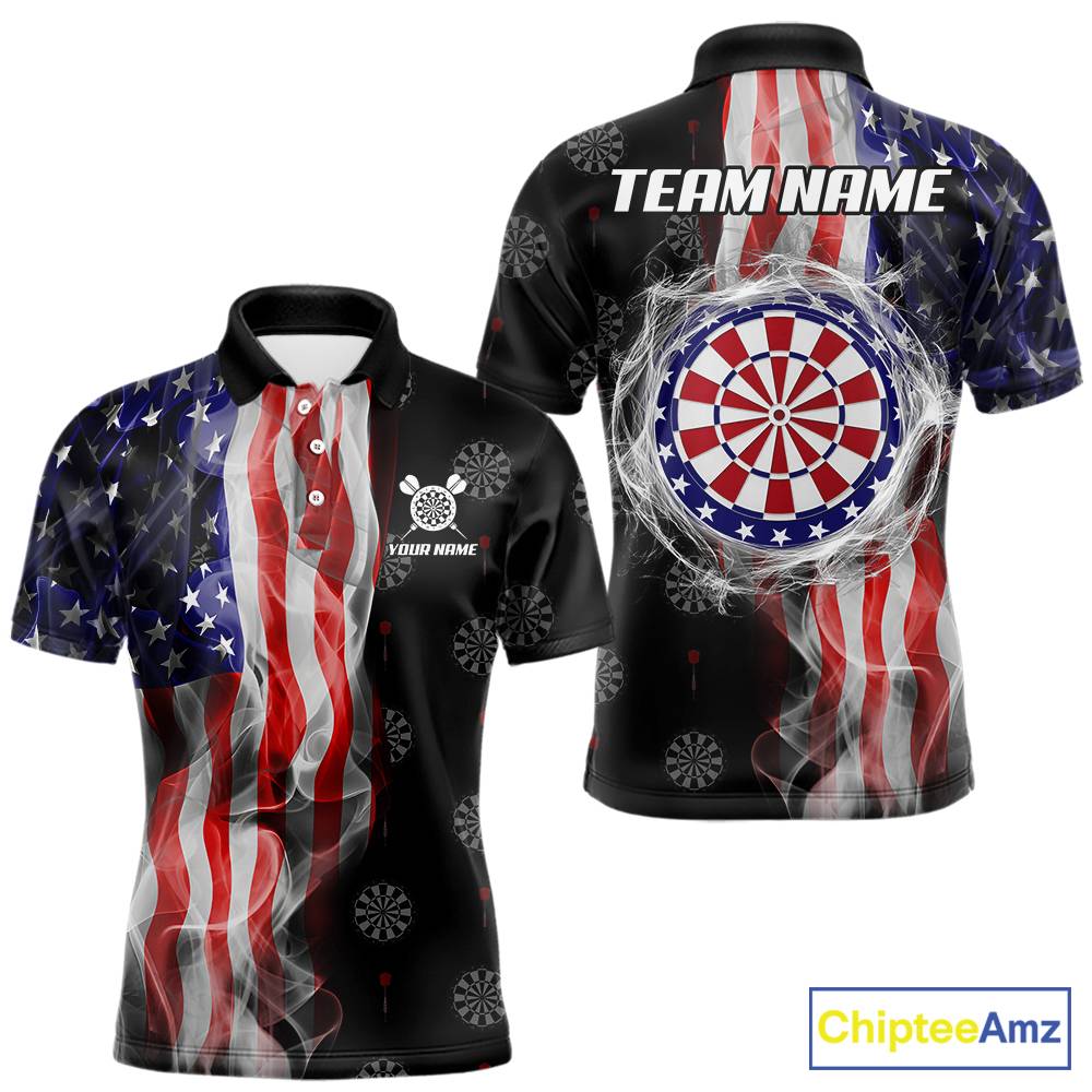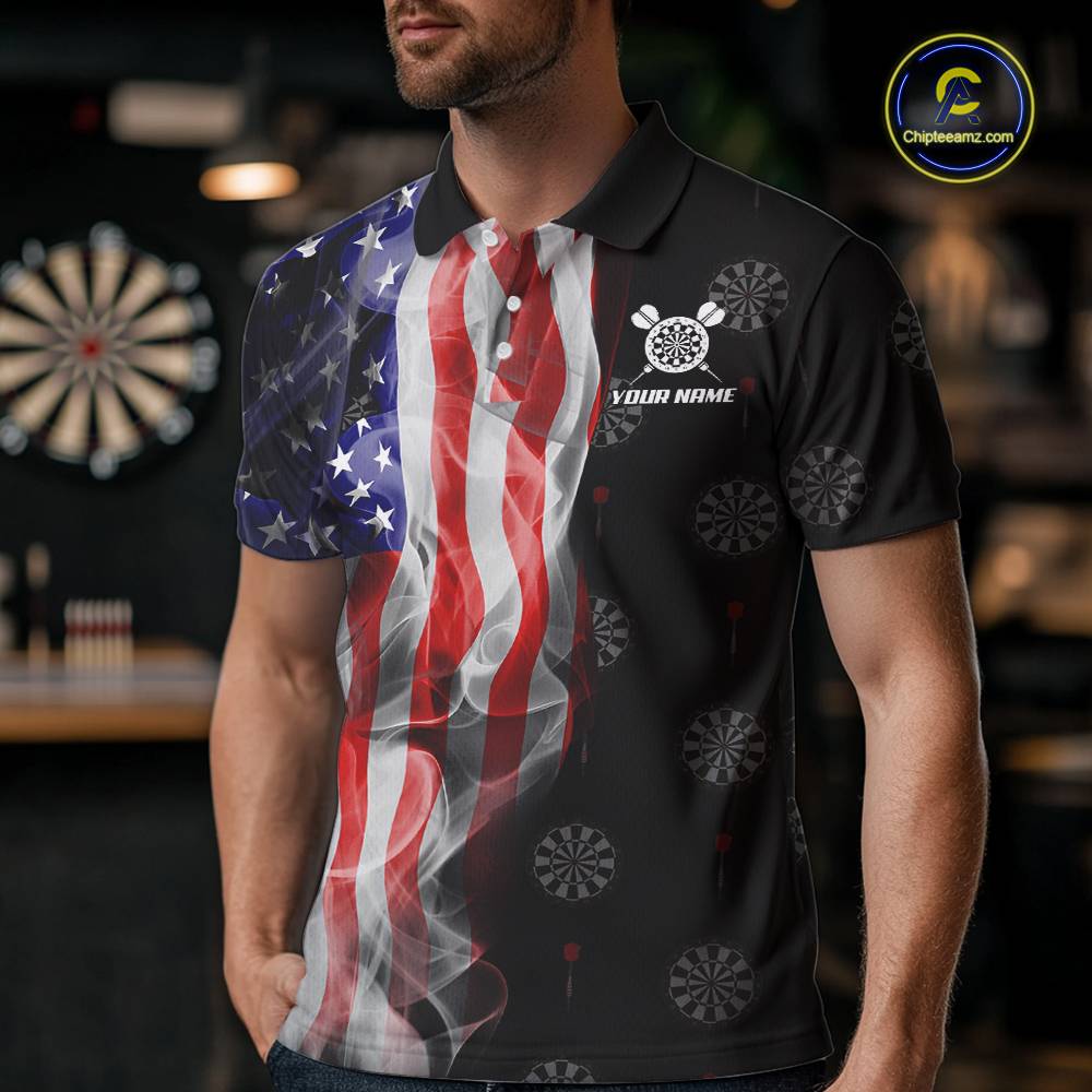 Personalized American Flag Smoke Darts Shirt For Men, Patriotic Darts Jersey Team Polo & 1/4 Zip TDM5680
