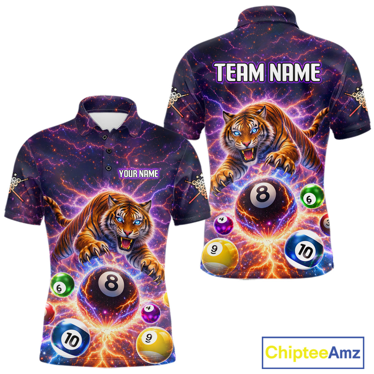 Colorful Billiard Balls Tiger Pool Shirt For Men Custom Thunder Lighting Billiard Team Jersey TDM5685