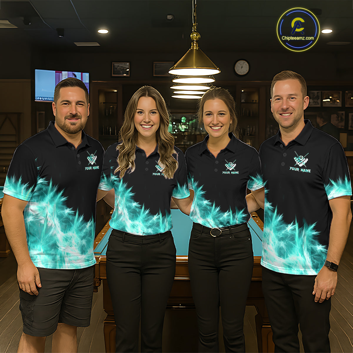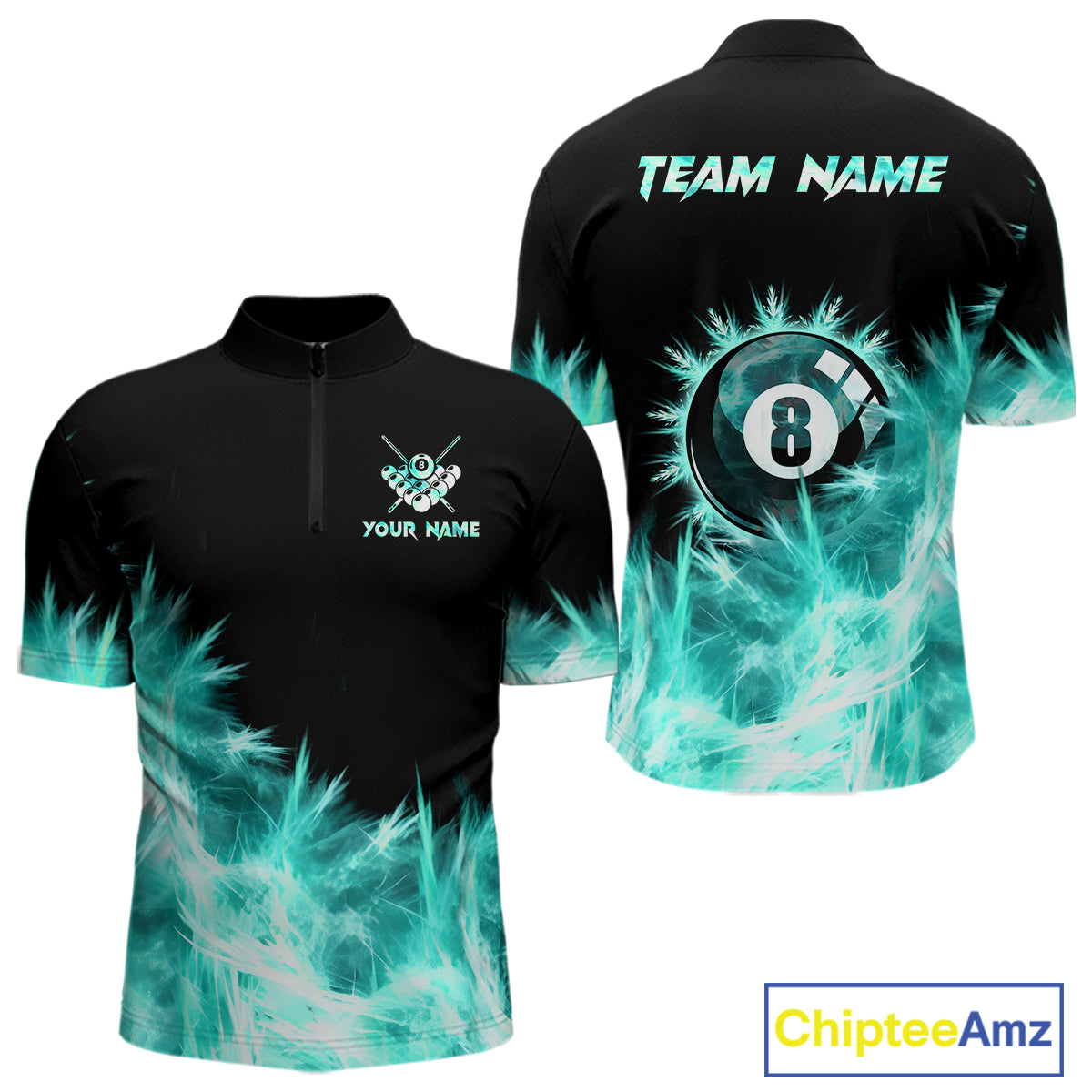 Turquoise Icy Light 8 Ball Pool Billiard Polo & 1/4 Zip For Men Custom Billiard Team Jerseys  TDM5689