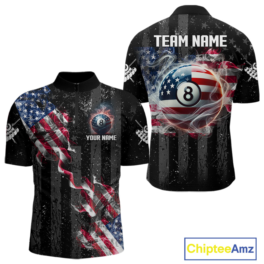 Custom US Flag Smoke 8 Ball Pool Billiard Shirt For Men, 3D Patriotic Billiard Team Jersey TDM5692