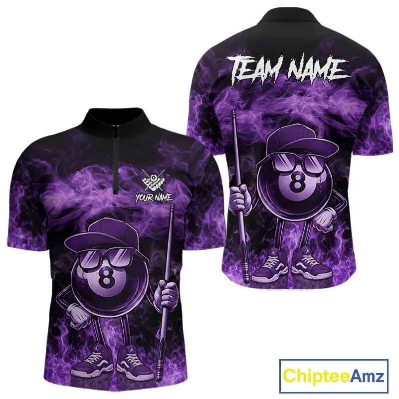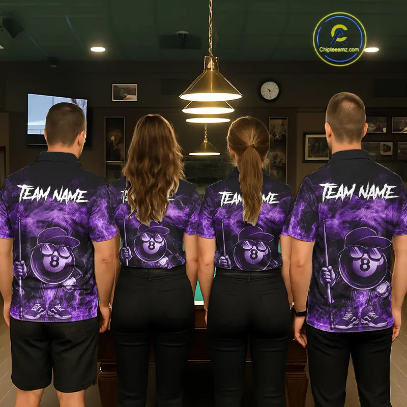 Purple Funny 8 Ball Pool Flame Smoke Billiard Shirt For Men Custom Billiard Team Jersey Uniform TDM5694