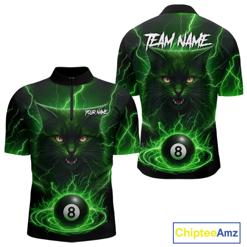 Green 8 Ball Thunder Lightning Cat Billiard Shirt For Men Custom Pool Team Jersey Polo & 1/4 Zip TDM5696