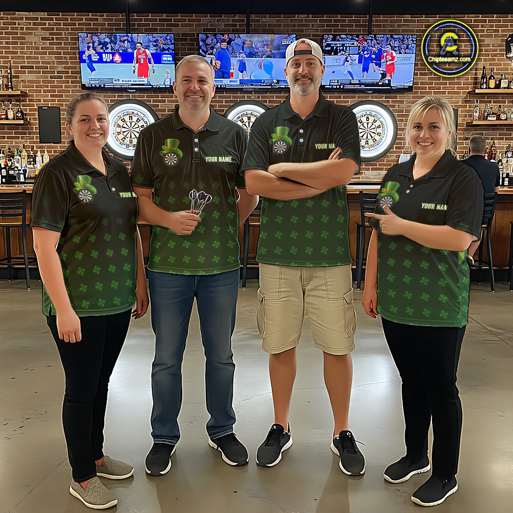 Black And Green St Patrick Day Shamrock Darts Shirt For Men Custom Lucky Darts Team Jersey TDM5705