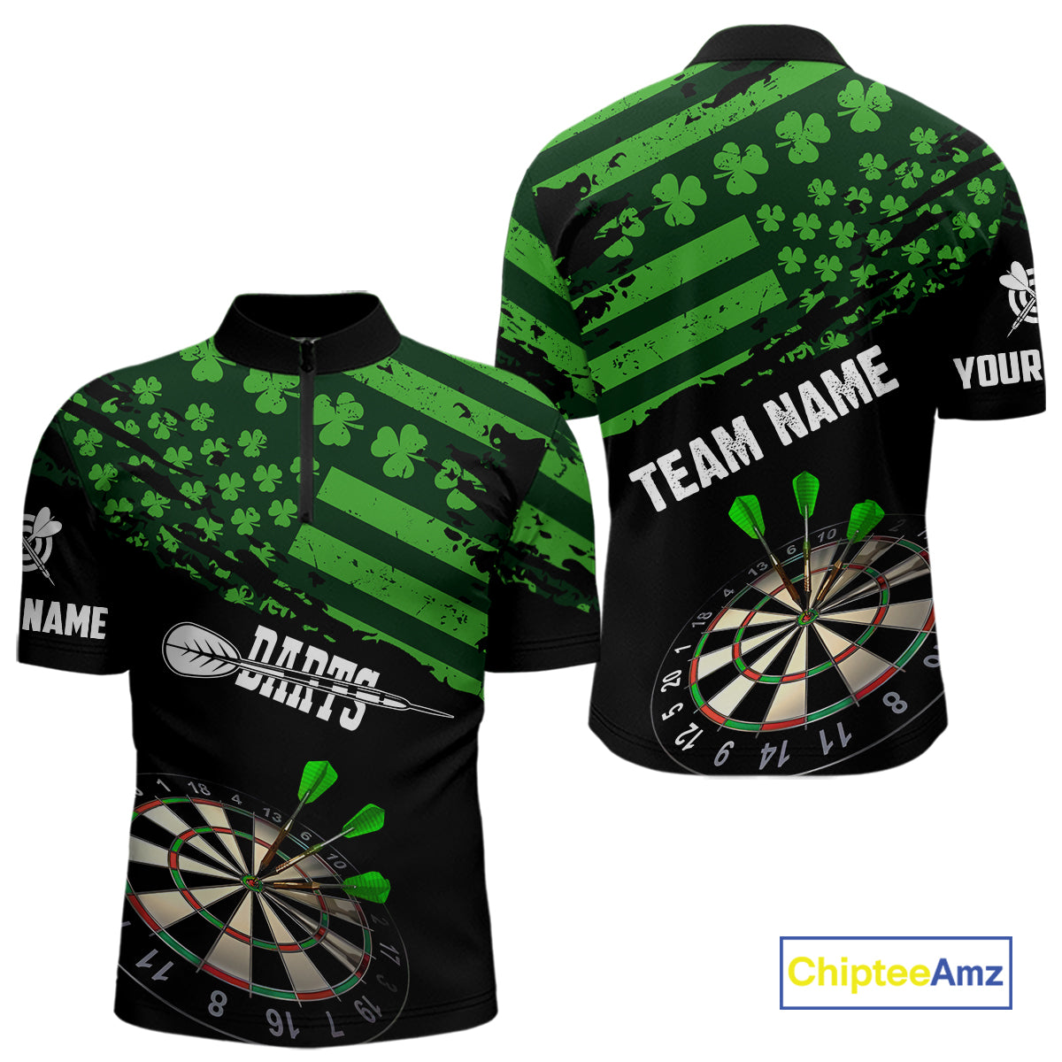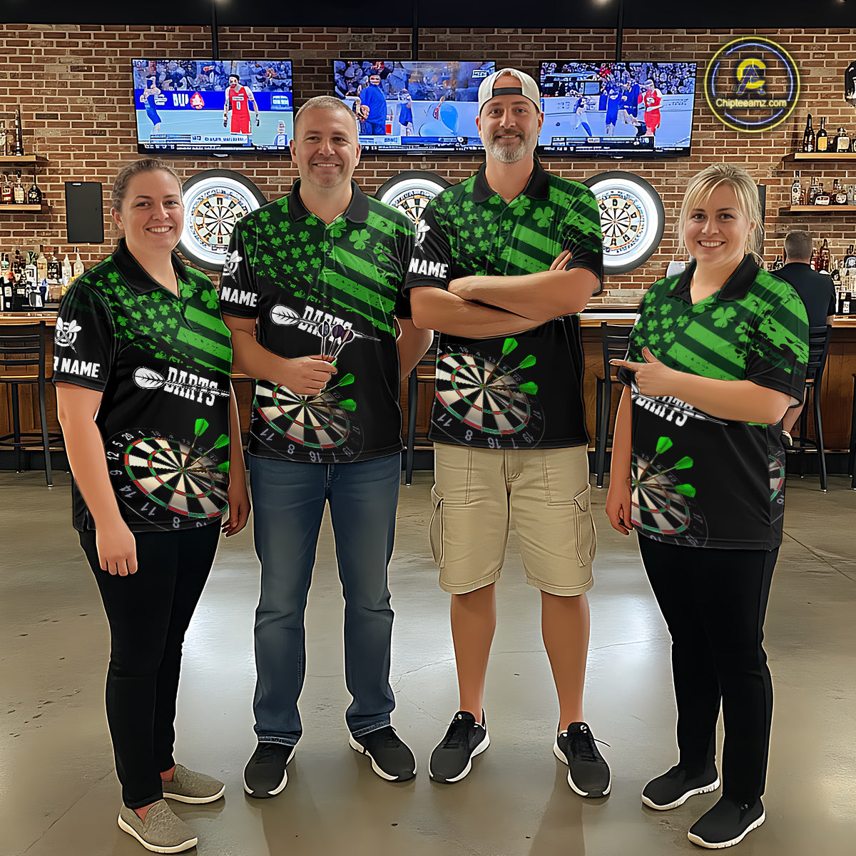 Personalized US Flag St Patrick Day Dart Shirts For Men Custom Luckiest Shamrock Darts Jerseys TDM5709