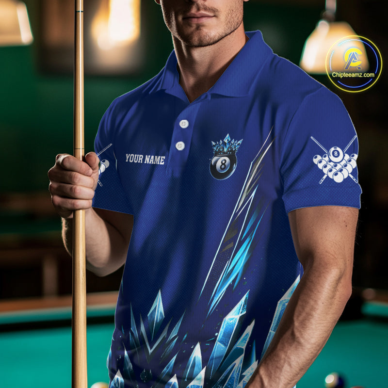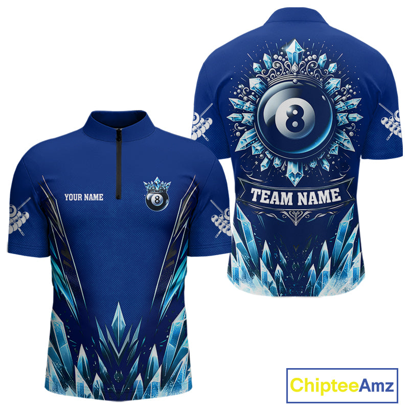 Blue 8 Ball Pool Icy Billiard Polo & 1/4 Zip For Men Custom Billiard League Team Jersey TDM5715