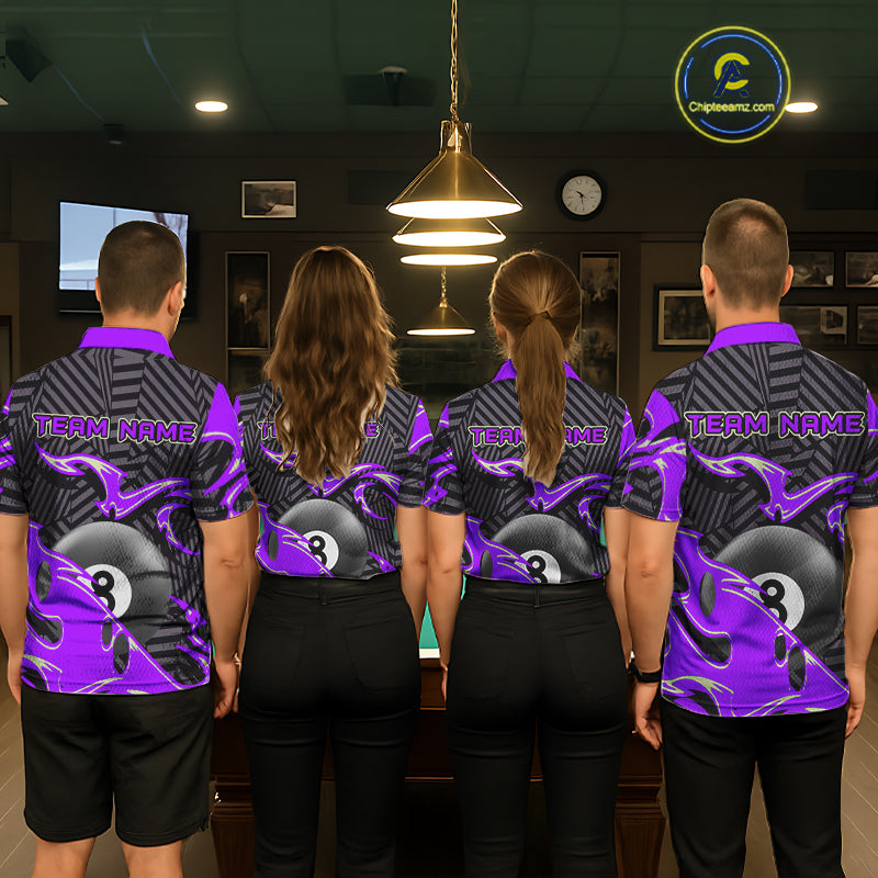 Custom Black Purple 8 Ball Tribal Flame Billiard Shirt For Men, Pool Team Jersey Polo & 1/4 Zip TDM5723