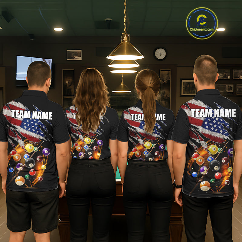 American Flag Pool Balls Billiard Shirt For Men Custom Patriotic Billiard Jersey Polo & 1/4 Zip TDM5730