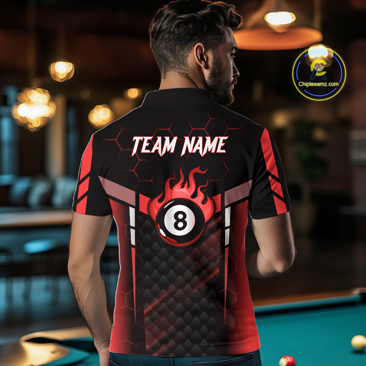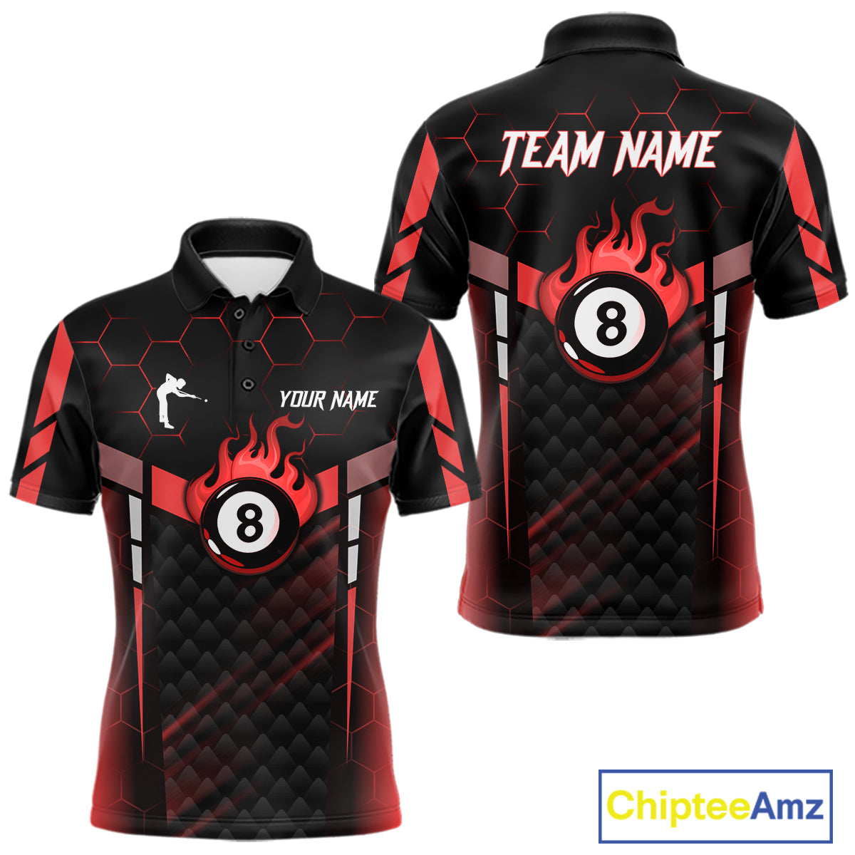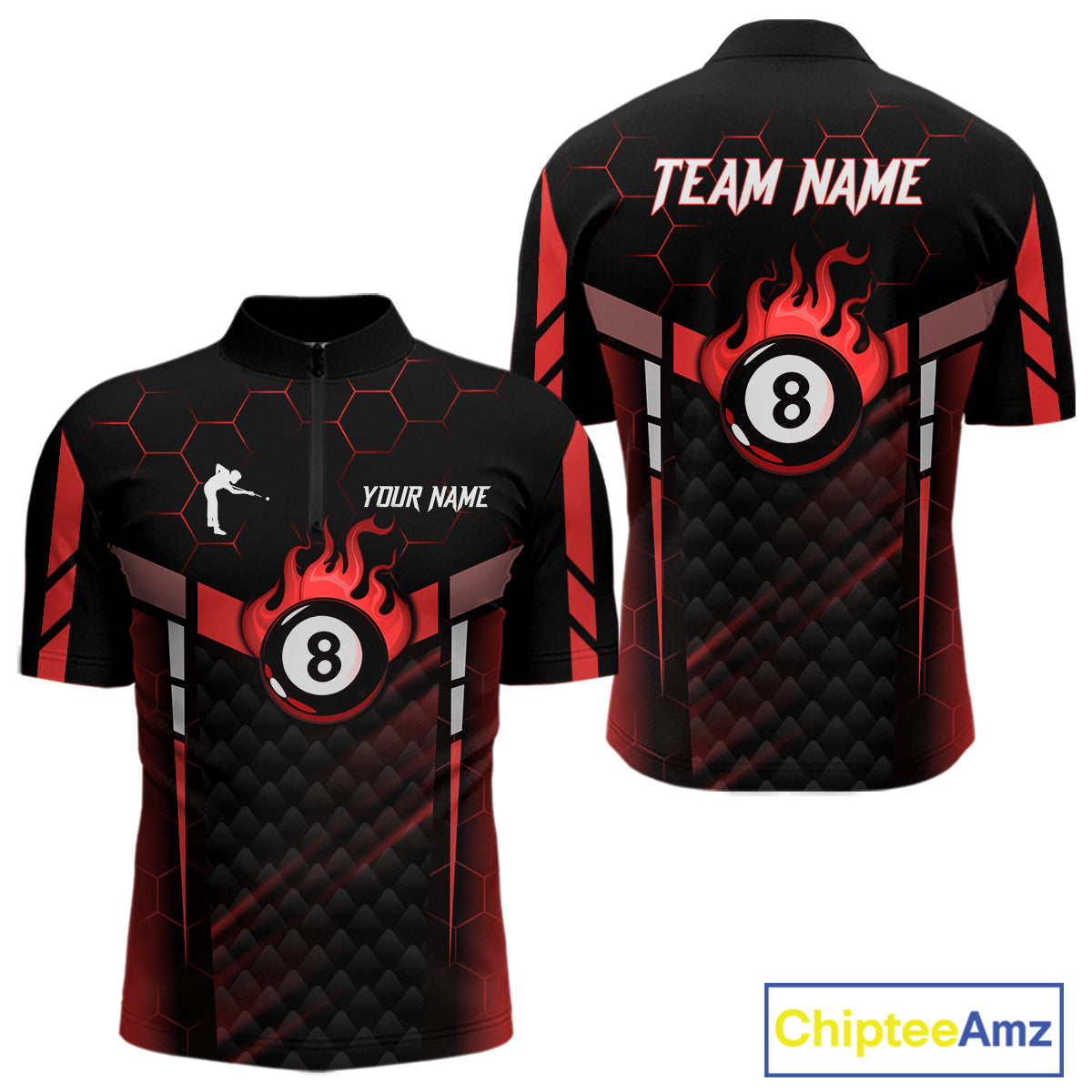 Personalized Red 8 Ball Flame Billiard Polo & Quarter Zip For Men, 8 Ball Pool Team Jersey TDM5732