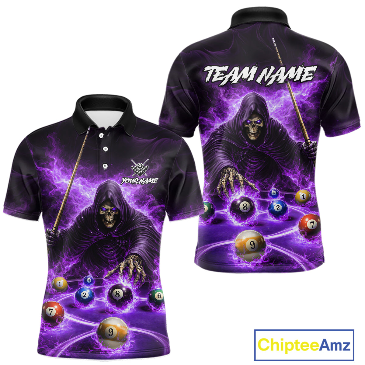 Purple Flaming Grim Reaper Billiard Shirt For Men Custom Pool Team Jersey Polo & Quarter Zip Shirt TDM5739