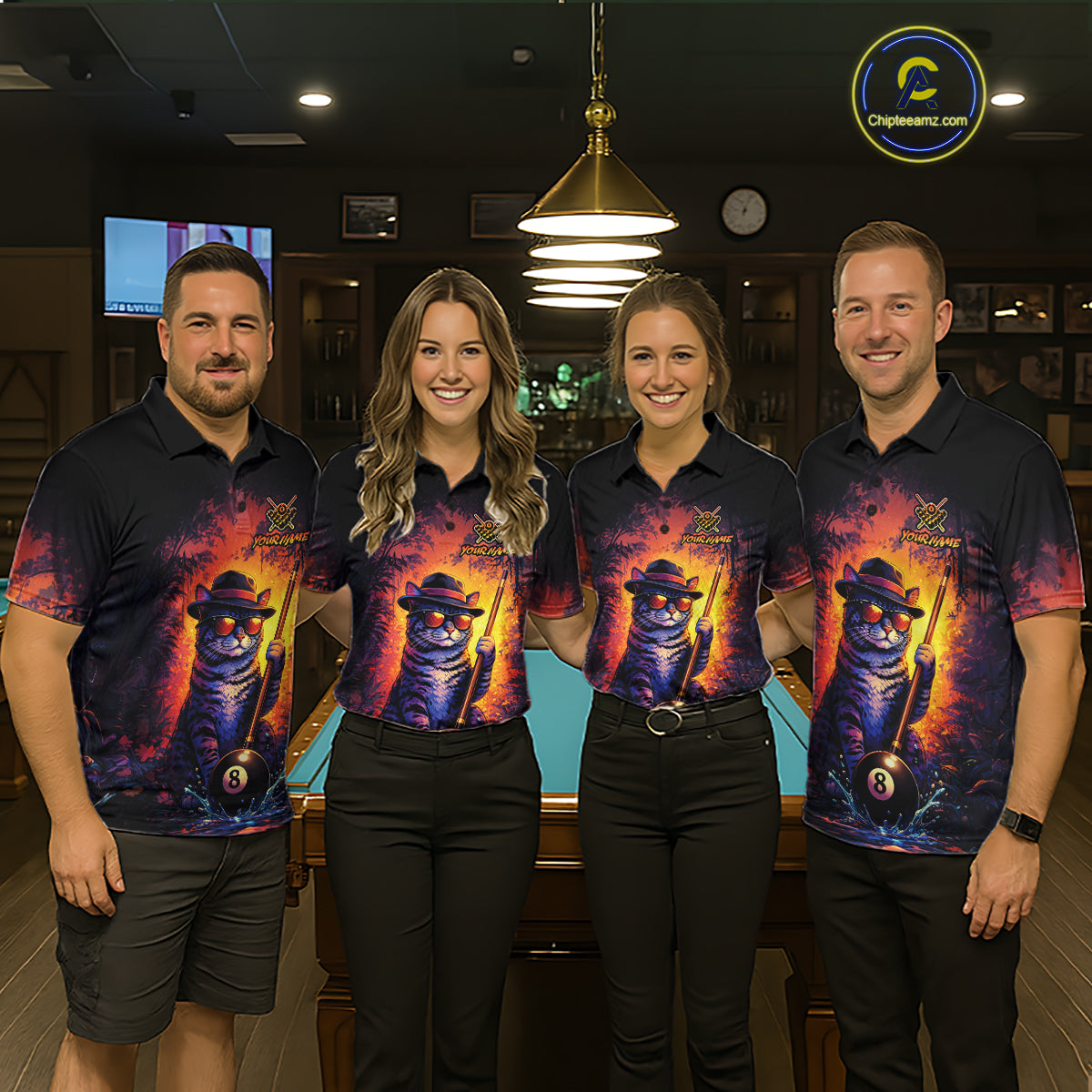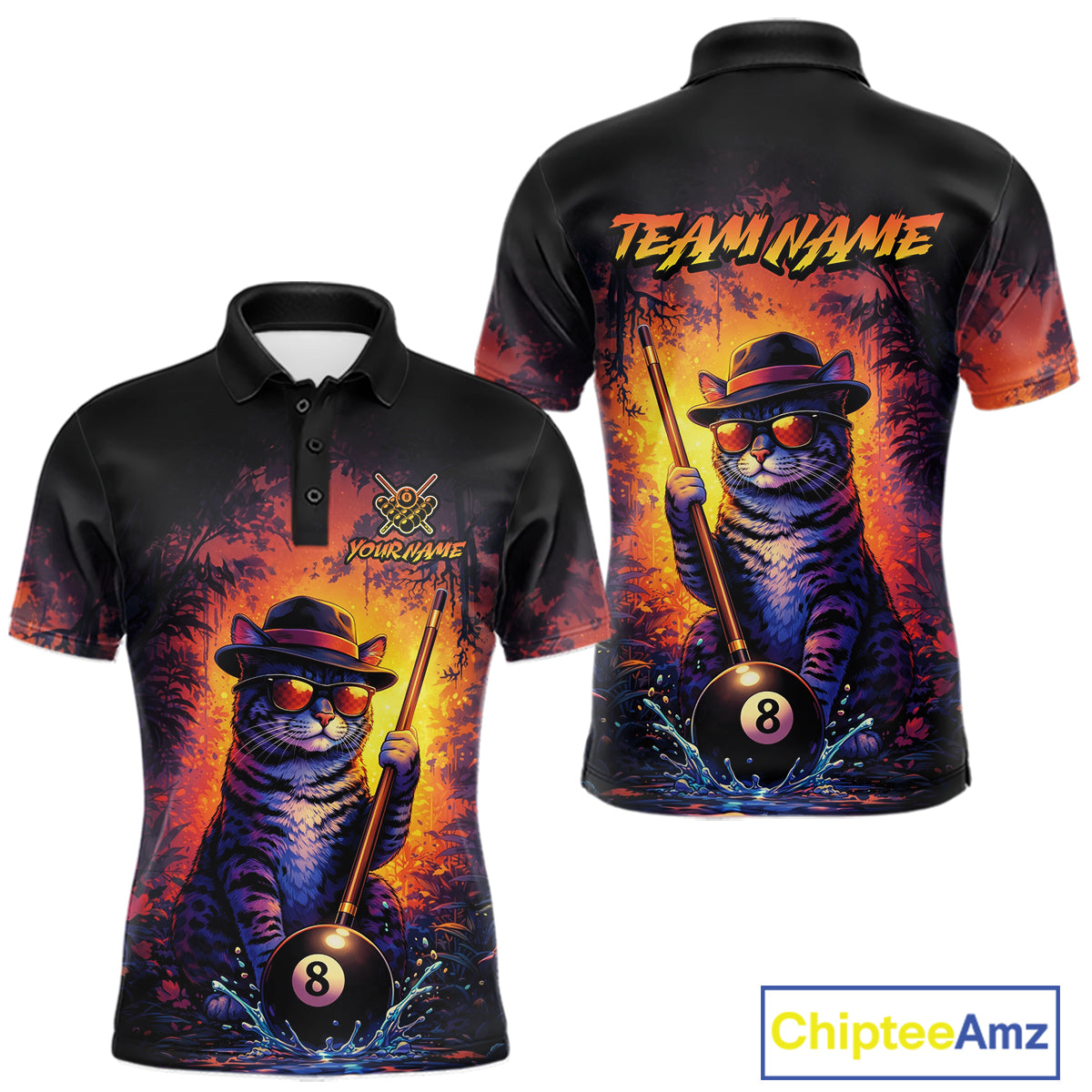 Personalized Vintage Funny Cat 8 Ball Billiard Shirt For Men, Pool Team Jersey Polo & 1/4 Zip TDM5751