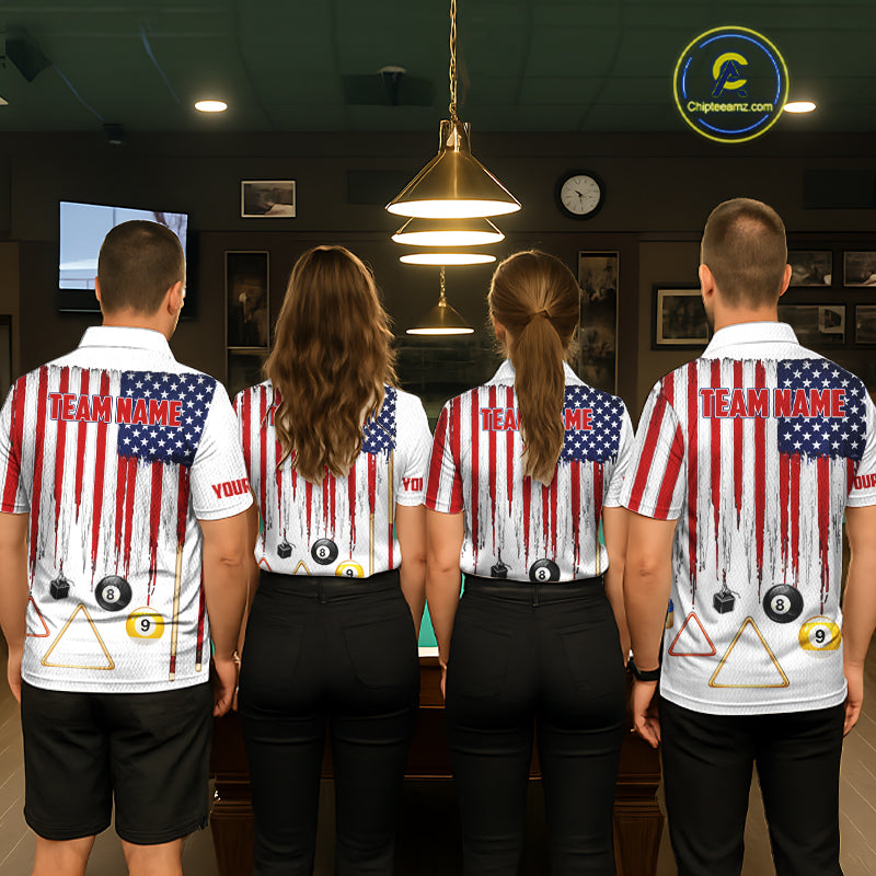 American Flag Billiard Shirt For Men Custom Patriotic Pool Team Jersey Polo & 1/4 Zip |White TDM5753