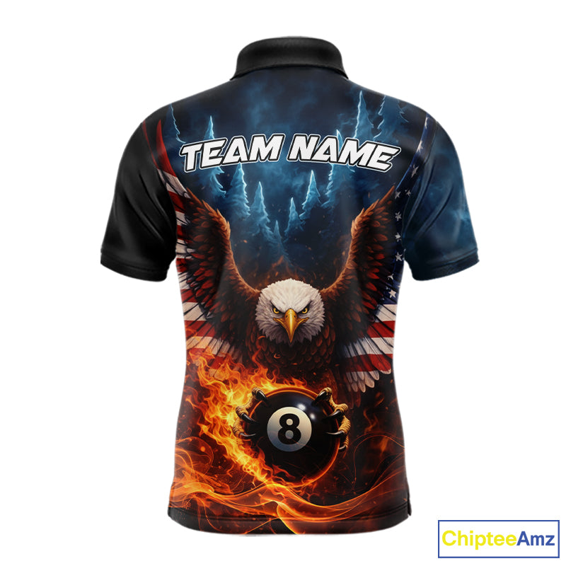 American Flag Eagle 8 Ball Flame Billiard Shirt For Men Custom Patriotic Pool Jersey Polo, 1/4 Zip TDM5754
